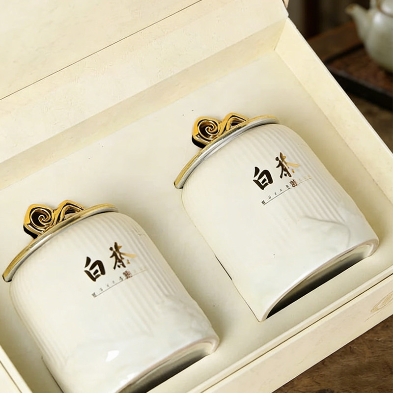 新款安吉白茶茶叶礼盒空盒高档半斤装高档陶瓷罐礼品盒包装盒定制