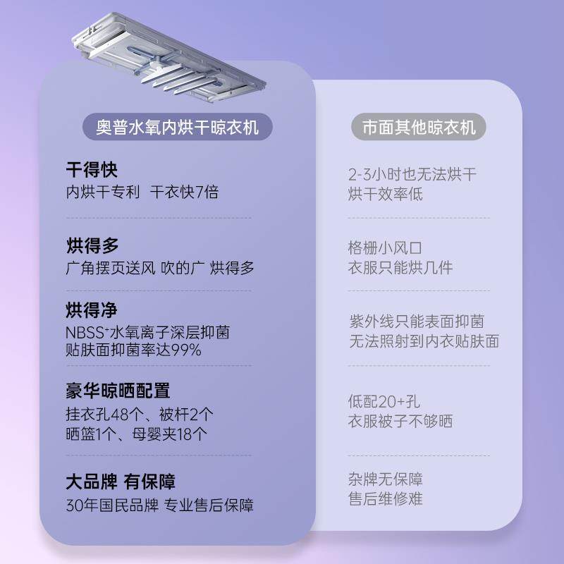 奥普电动晾衣架内烘干水氧杀菌智能自动升降阳台晾衣杆伸缩晒衣架