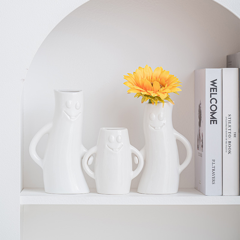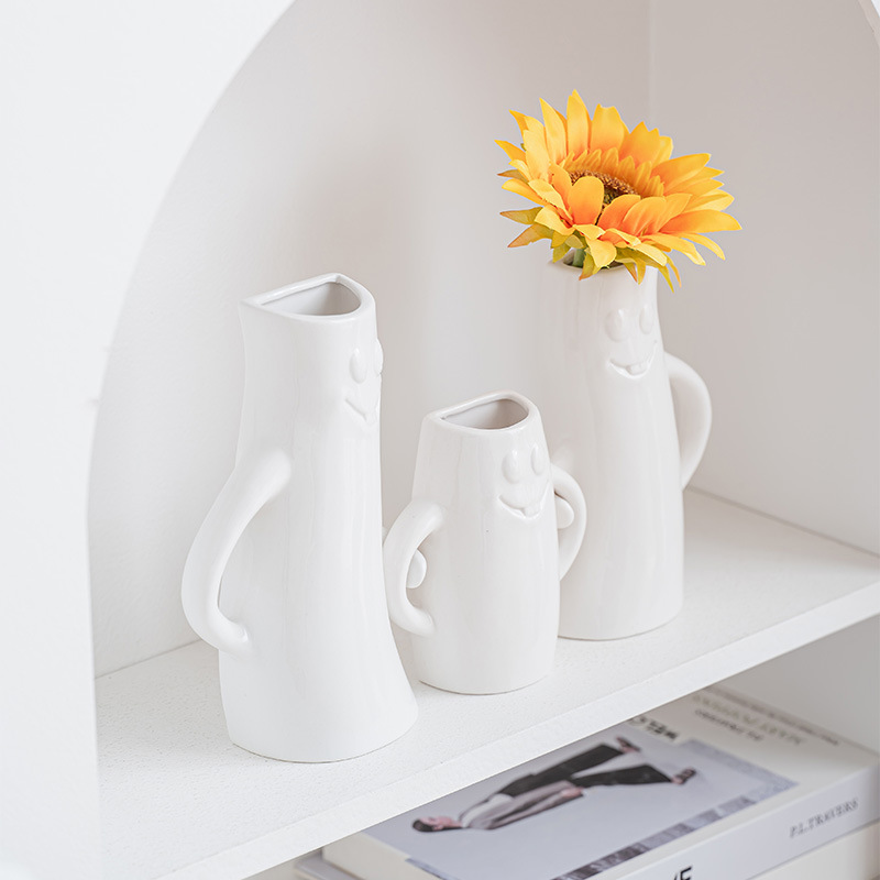 简约三件套陶瓷花瓶工艺品摆件电视柜装饰品白色花瓶家居客厅摆件