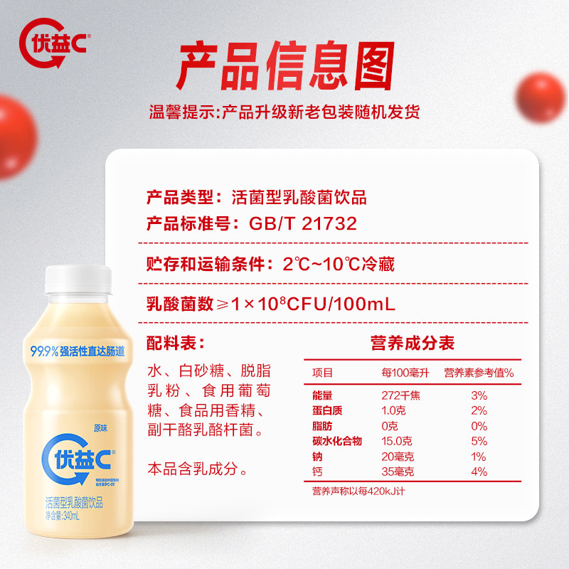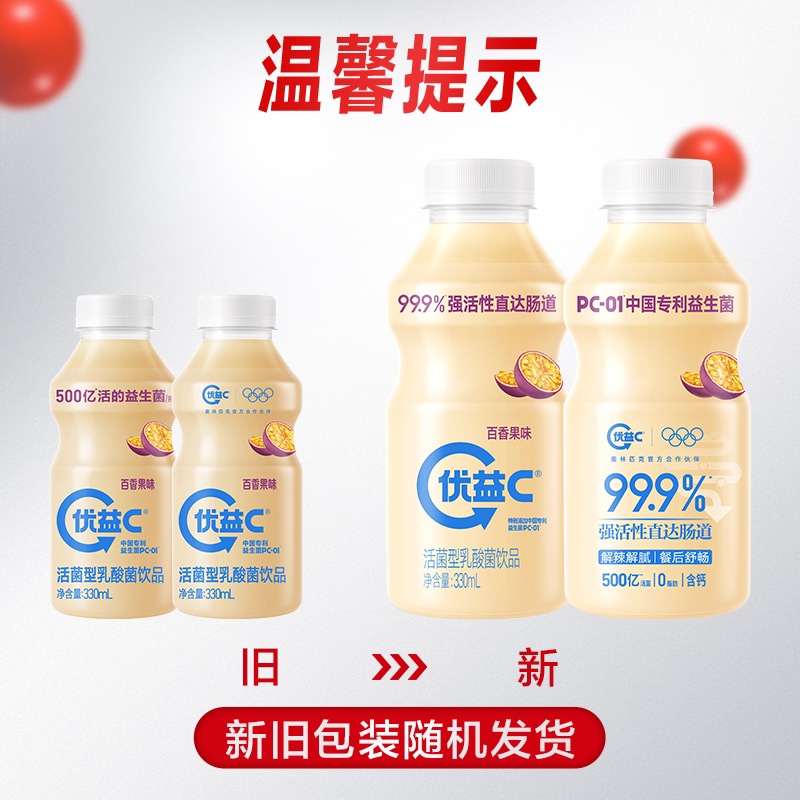 优益C活菌型乳酸菌饮品活的益生菌乳饮料原味百香果蔗糖瓶装大瓶