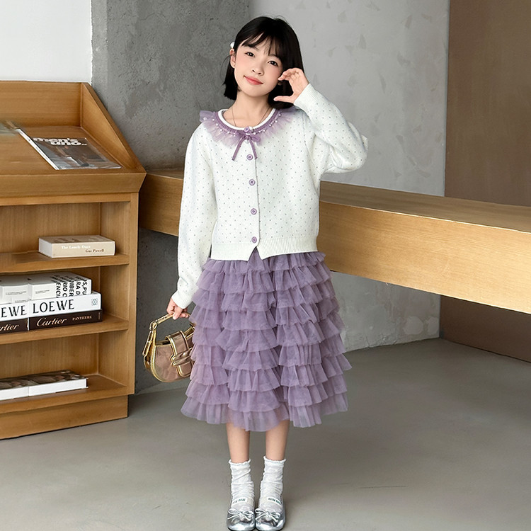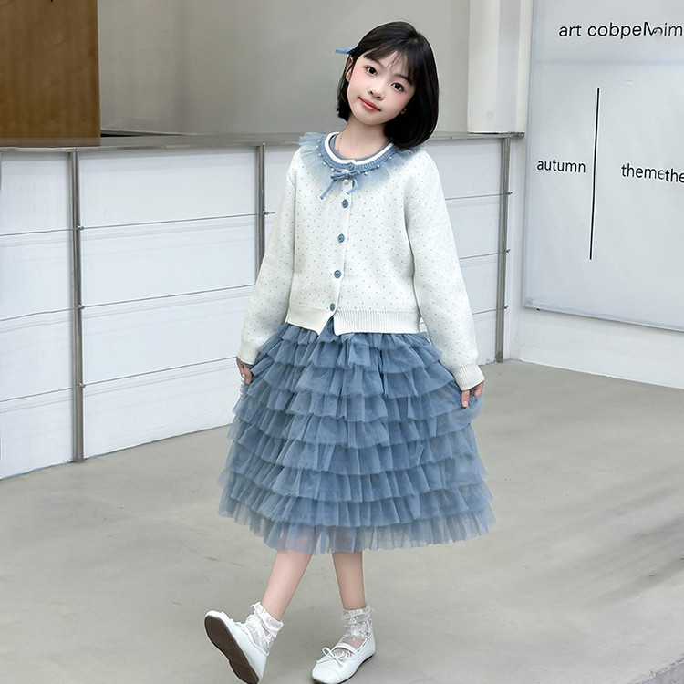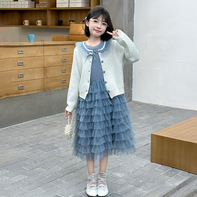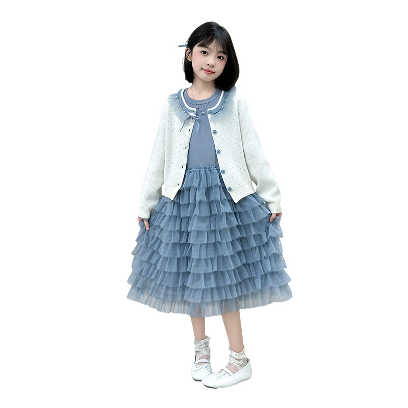 女童针织外套连衣裙春秋款洋气时尚2025新款韩版公主蛋糕裙中大童
