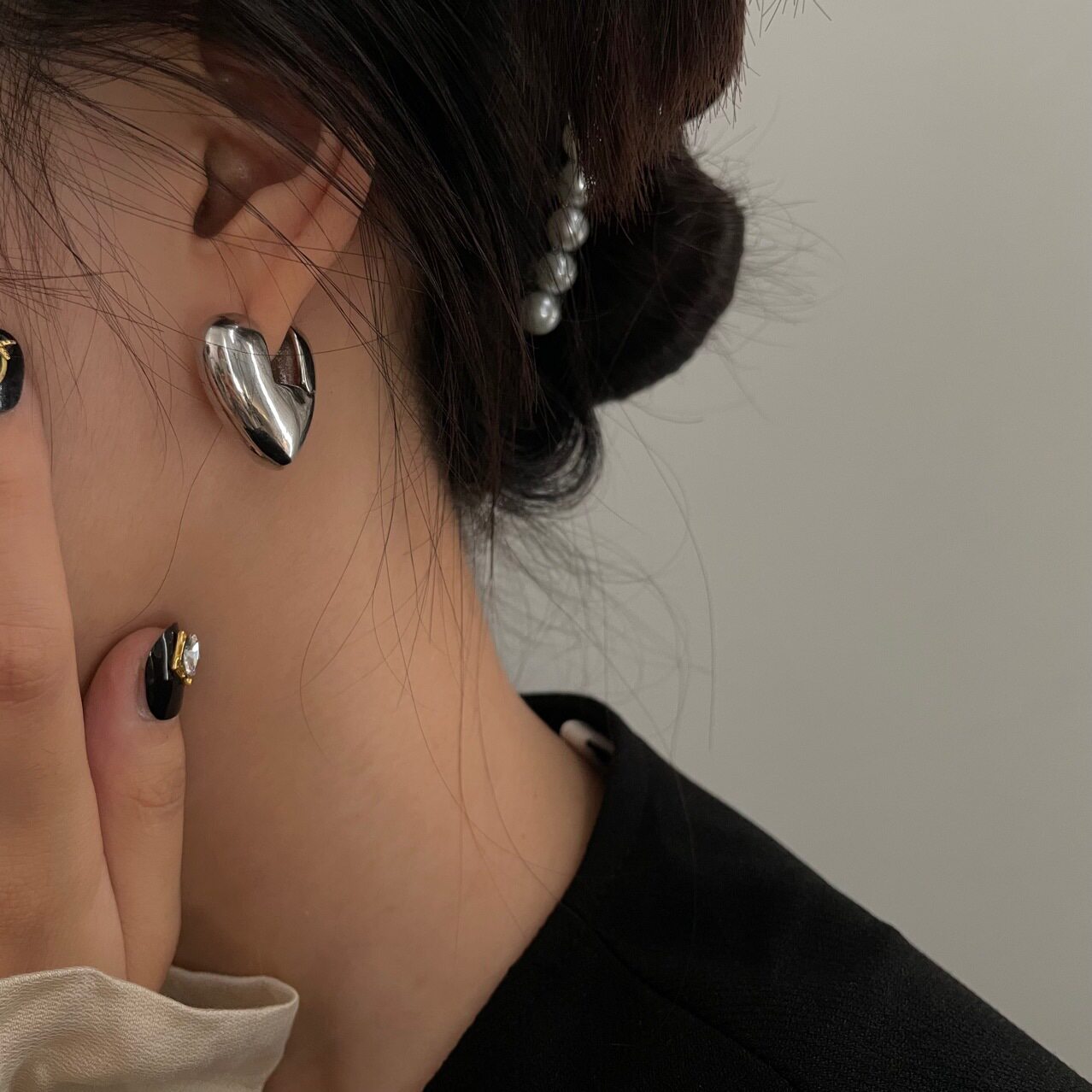 韩版专柜同款简约金属爱心耳扣明星特色造型冷淡风耳饰女S925银针