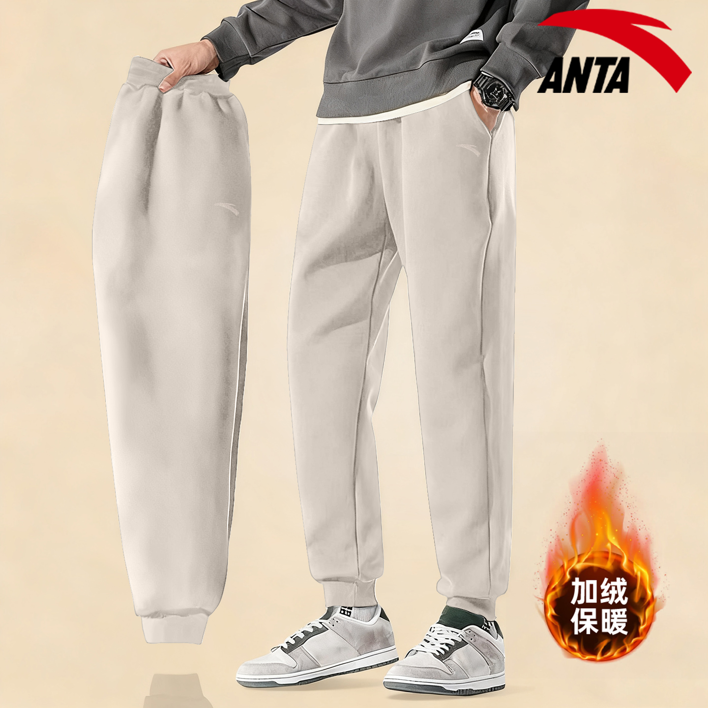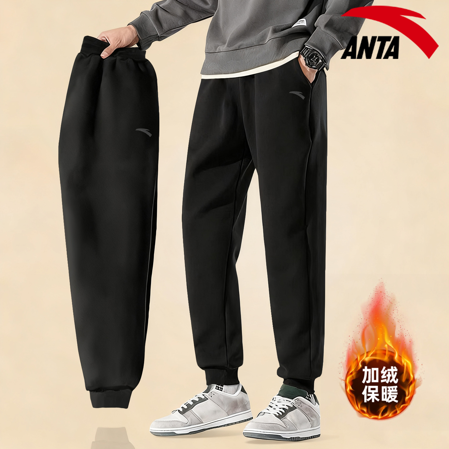 安踏运动裤男款加绒秋冬季2025新款简约加厚保暖长裤休闲收口卫裤