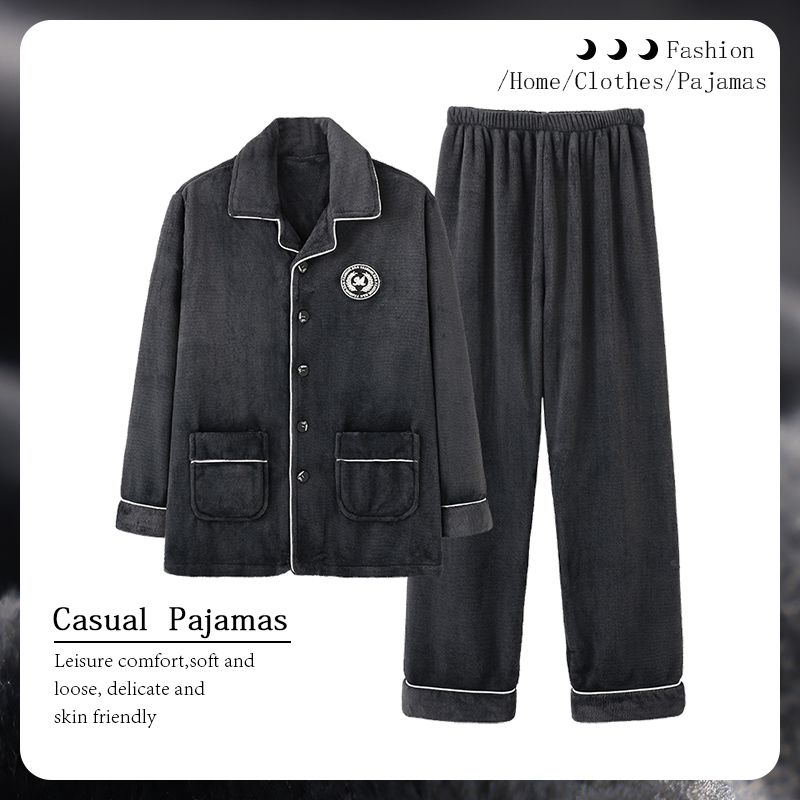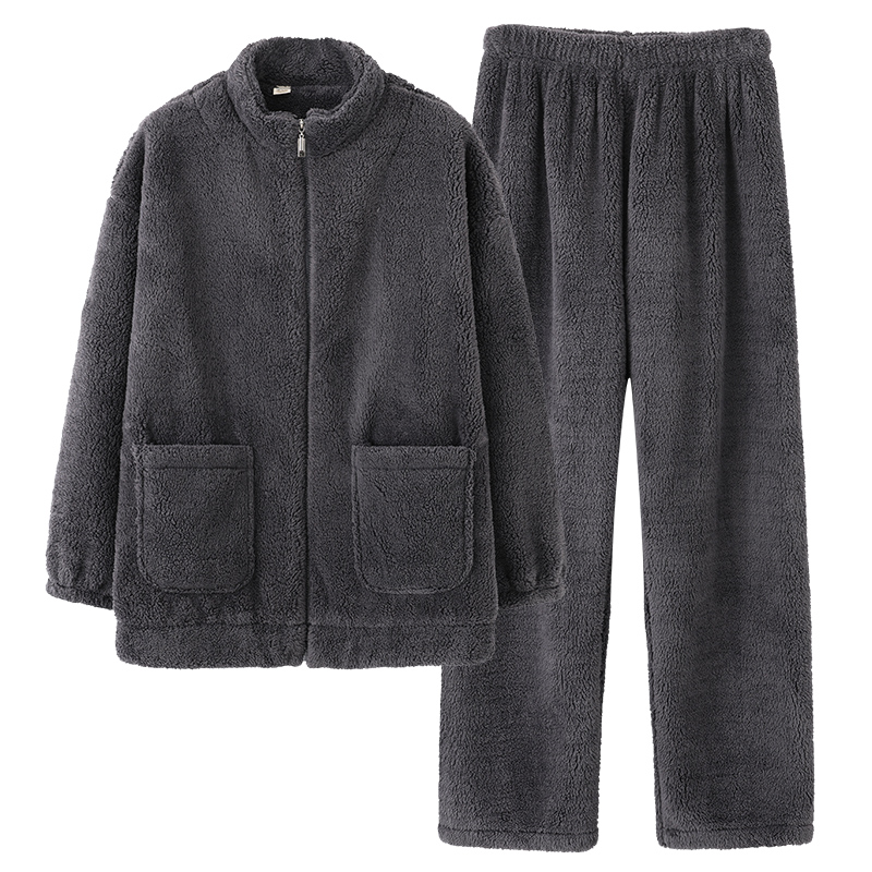 加厚珊瑚绒两件套睡衣男士