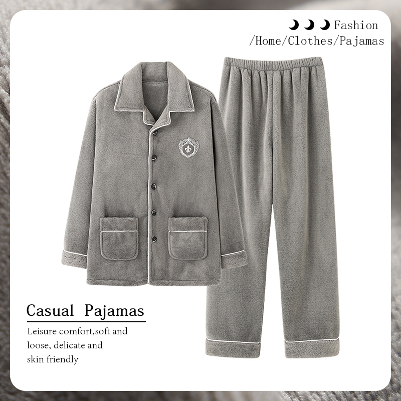 芬腾可安珊瑚绒男士爸爸加厚法兰绒保暖睡衣中老年冬季家居服套装