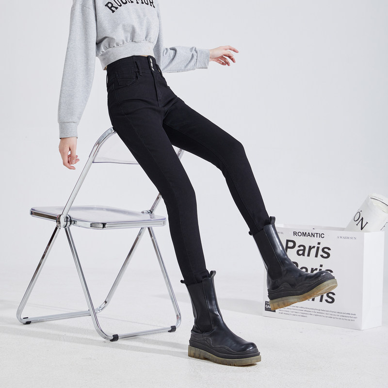 唐狮女牛仔裤高腰秋季新修身小脚裤紧身显高百搭潮酷黑裤子女