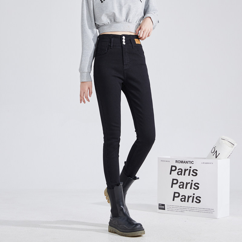 唐狮女牛仔裤高腰秋季新修身小脚