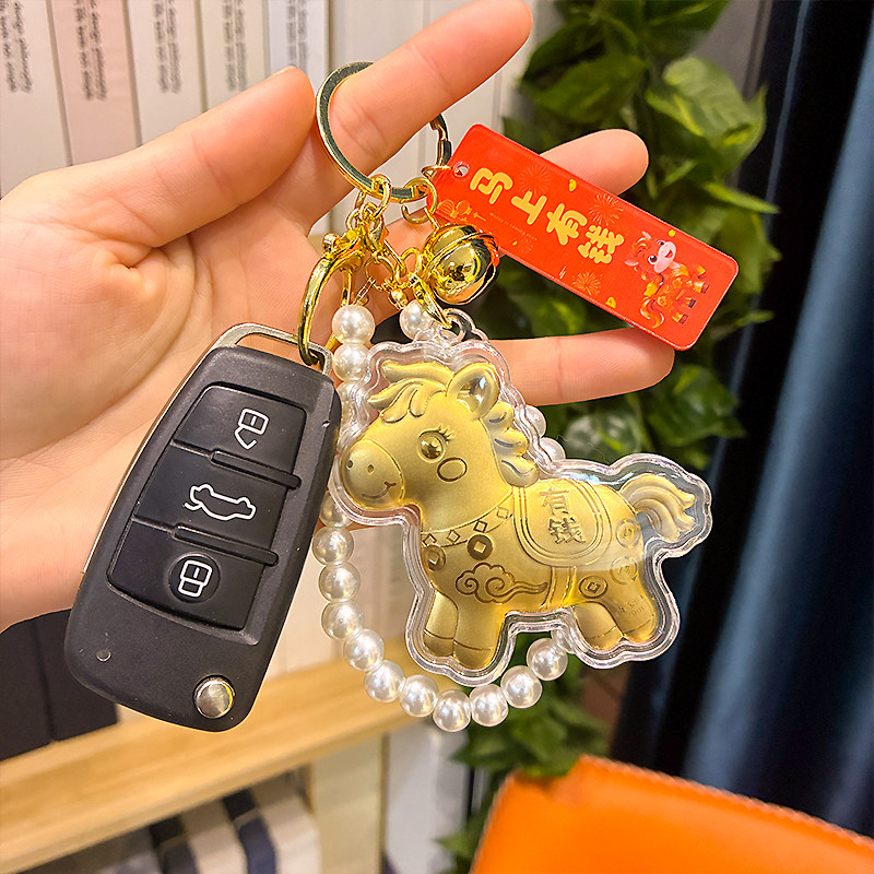 2026新款创意马上有钱珍珠链塑箔金马手机链挂件钥匙扣包挂饰礼物