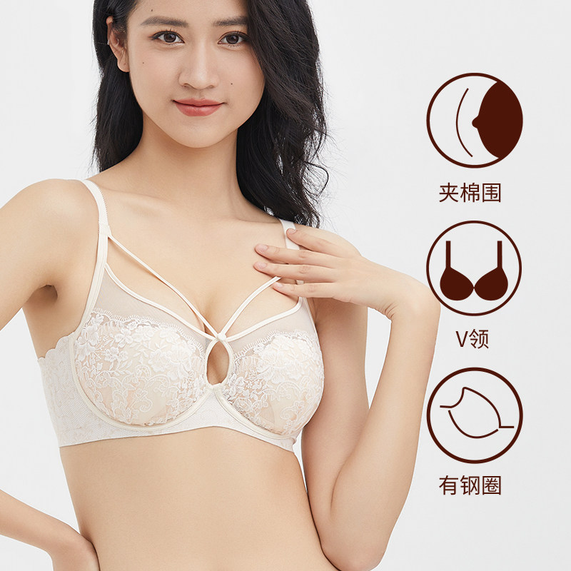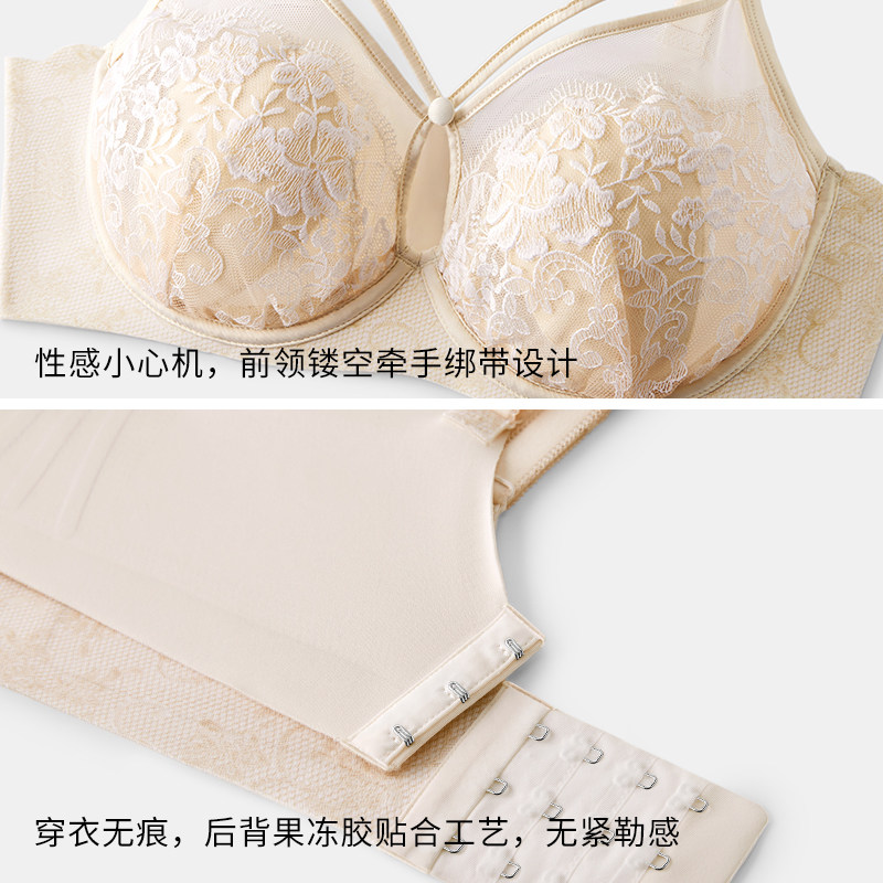 桑扶兰内衣女大胸显小兔耳朵防凸点薄聚拢防下垂蕾丝性感无痕文胸
