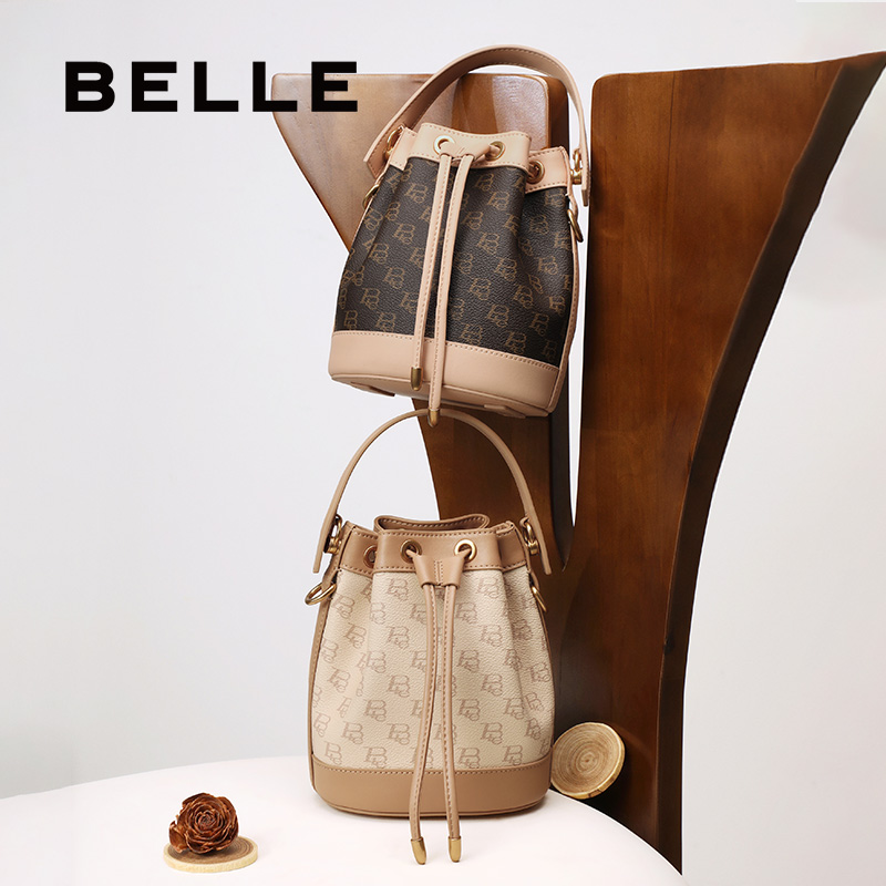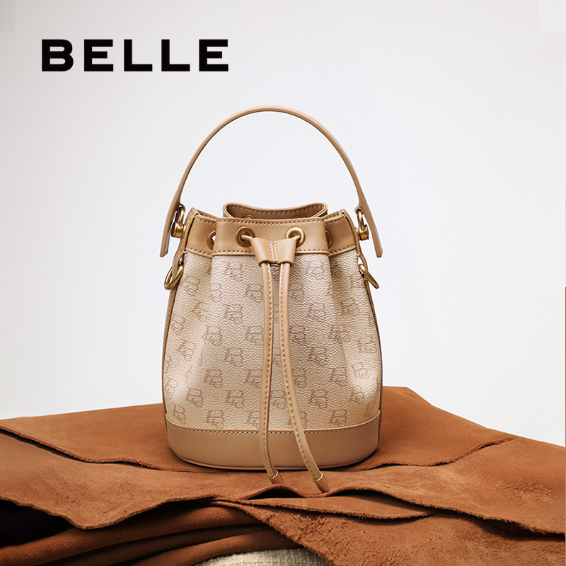 百丽包包女新款菜篮子经典老花斜挎包单肩手提包小水桶包X9179CX4