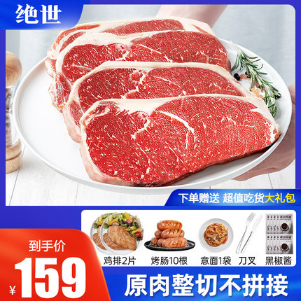 绝世牛排原肉整切黑椒10片牛扒牛肉新鲜儿童菲力西冷雪花眼肉微腌