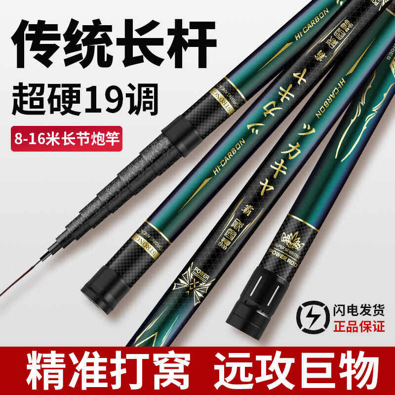 日本进口碳素钓鱼竿手竿超轻硬打窝竿7/11/12/16米炮竿长节竿鱼竿