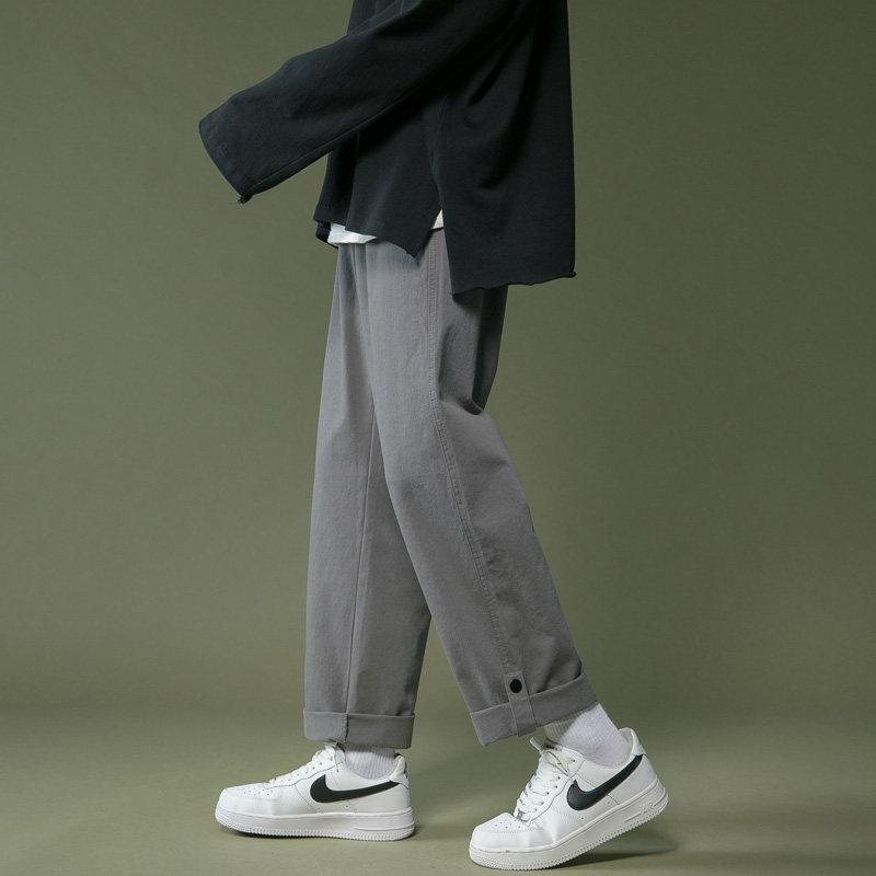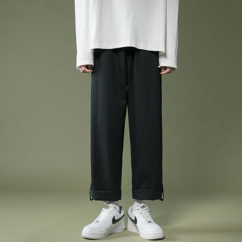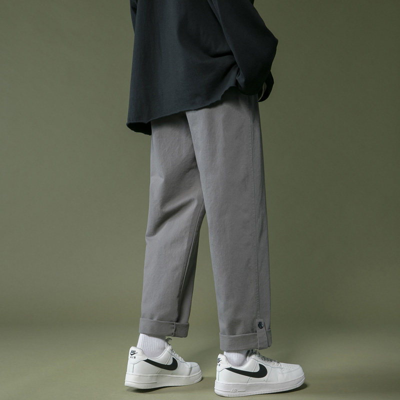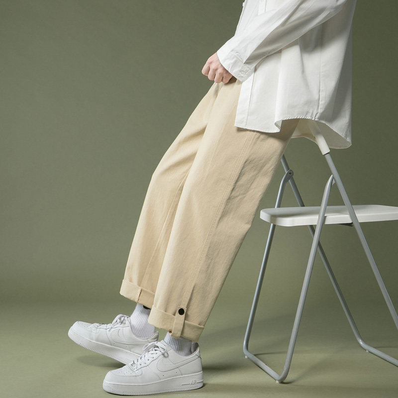 美式复古工装裤男秋季宽松阔腿直筒休闲高街潮牌潮流卷边九分裤子