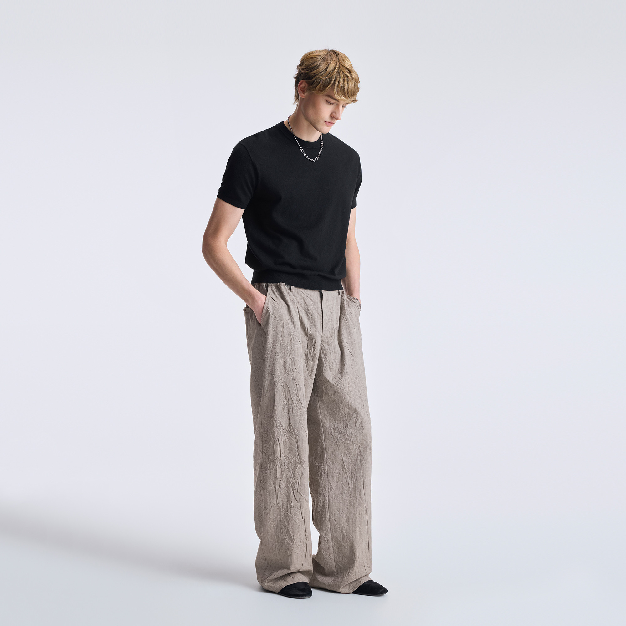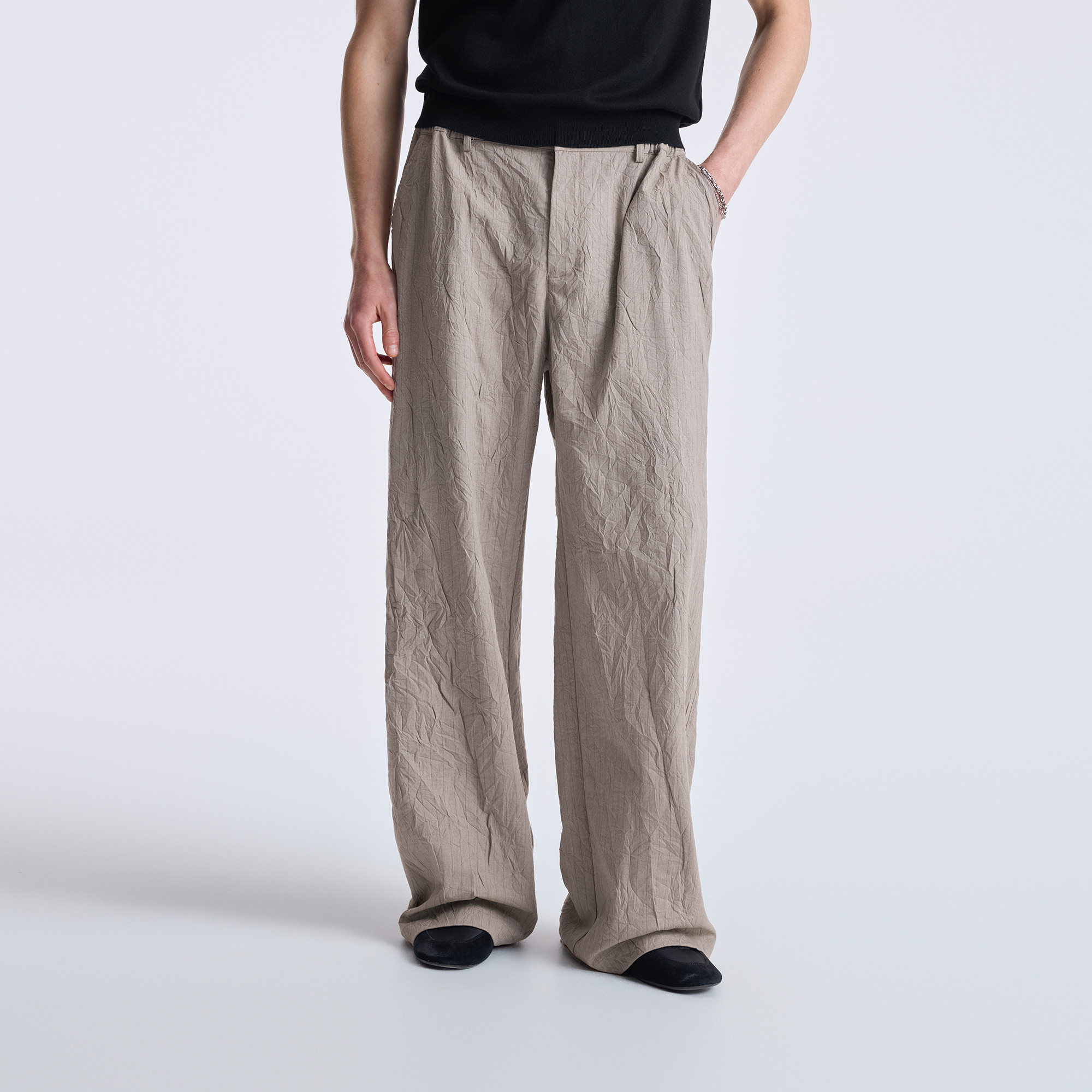 BODYDREAM条纹压皱廓形西裤男裤春季新品休闲通勤西装裤/可调节腰
