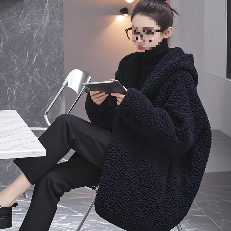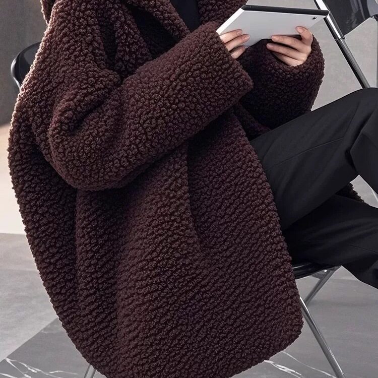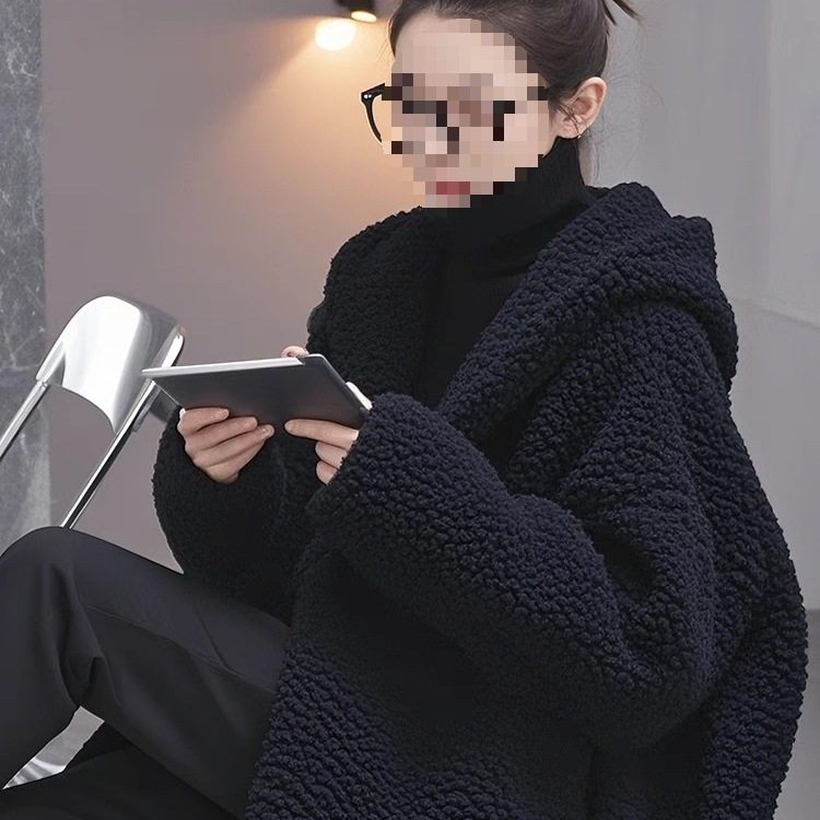 跨境冬季感超好看上衣韩系温柔小香风棕色仿羊羔毛加厚摇粒绒