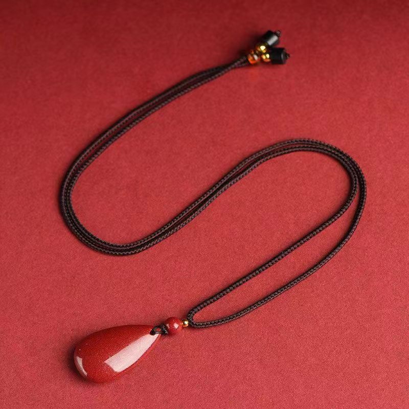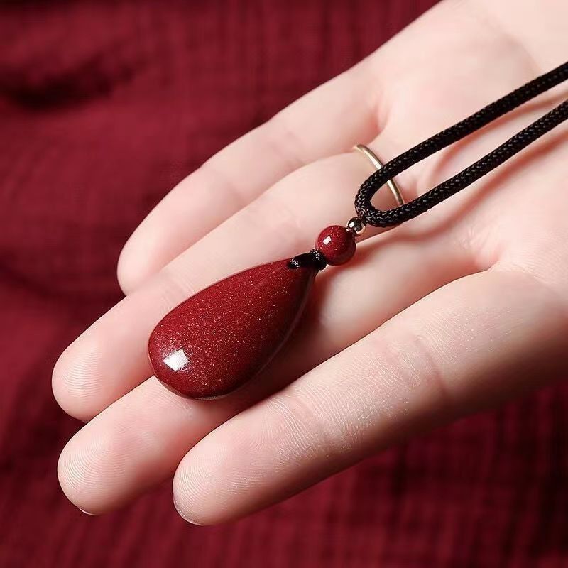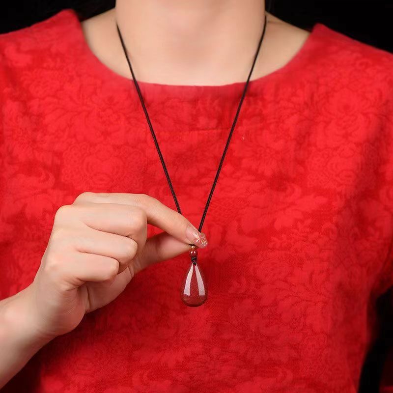 朱砂紫金水滴本命年男女转运项链吊坠款项滴水饰品挂件礼物