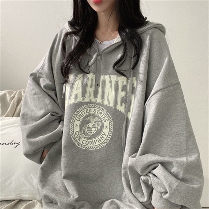 棉拉链连帽卫衣女宽松韩版中长款薄款百搭春秋春夏外套in加绒