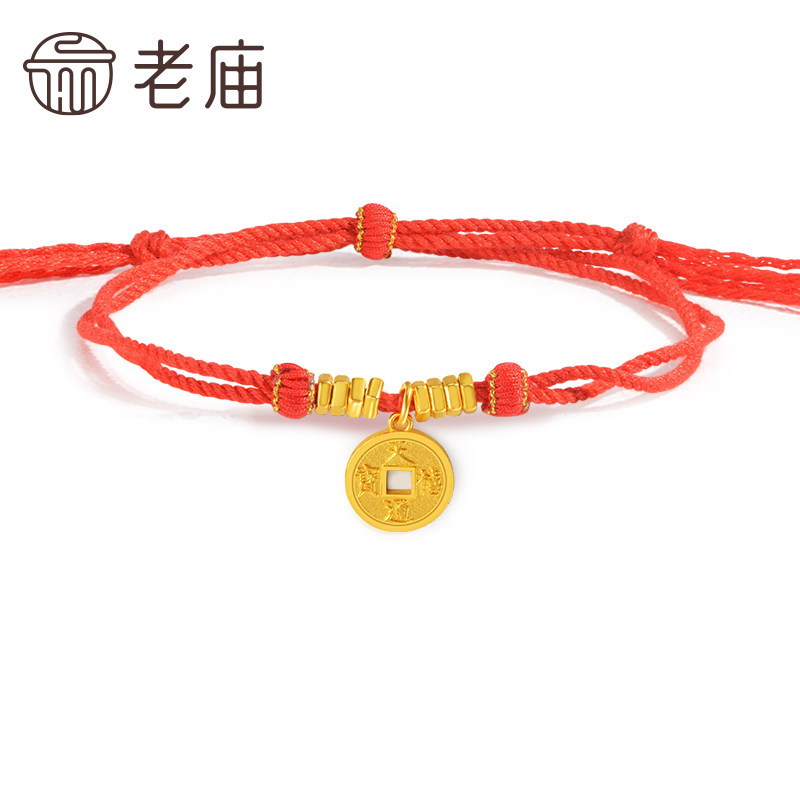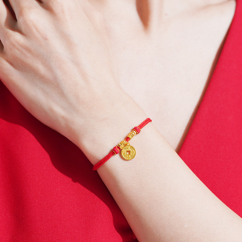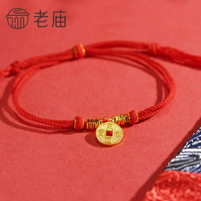 老庙黄金足金铜钱手绳古法工艺福运年年祥瑞财运满满金盘缠送礼