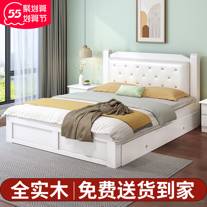 实木床白色软包床现代简约1.5米双人床主卧1.8m工厂直销1.2单人床