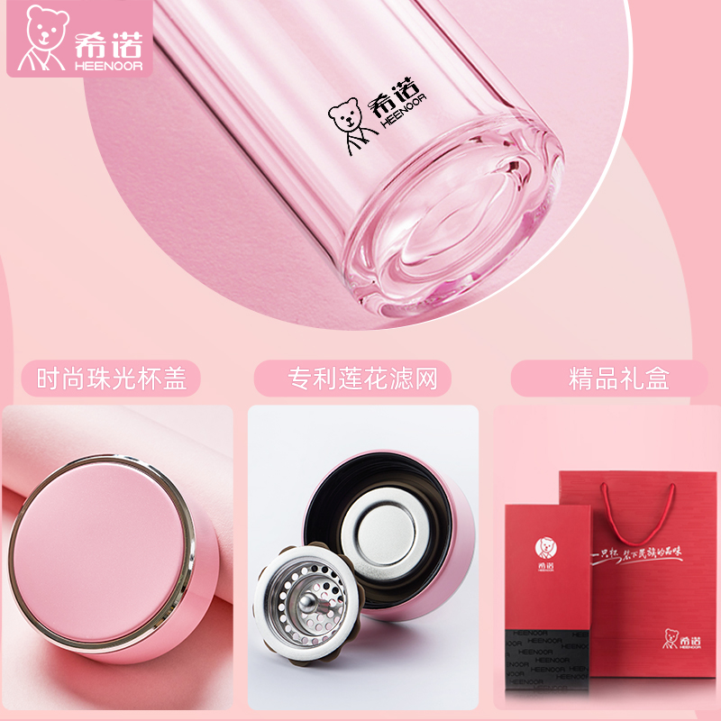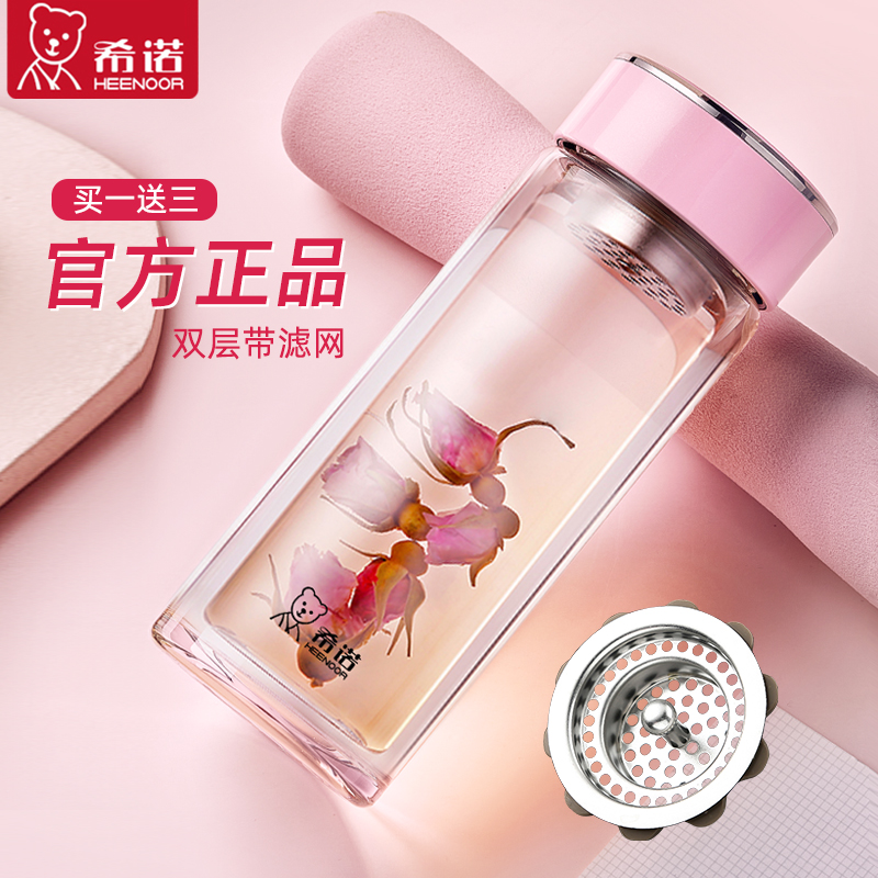 希诺官方正品双层玻璃杯女高颜值家用喝水杯子新款茶水分离泡茶杯