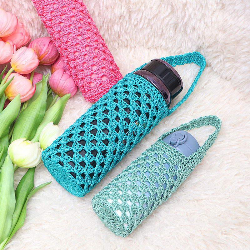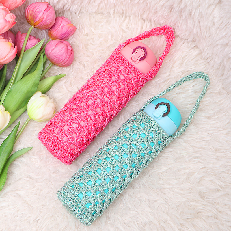 杯套保温杯玻璃杯学生水壶500毫升通用保护套手工针织手提水杯套