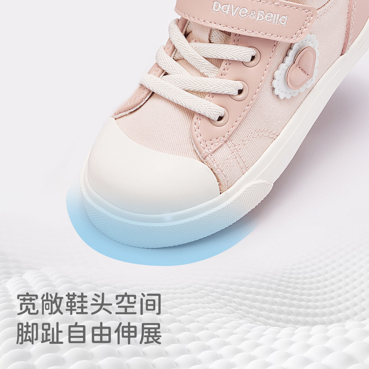 戴维贝拉儿童中帮板鞋春季新款女童帆布鞋中大童洋气鞋子童鞋