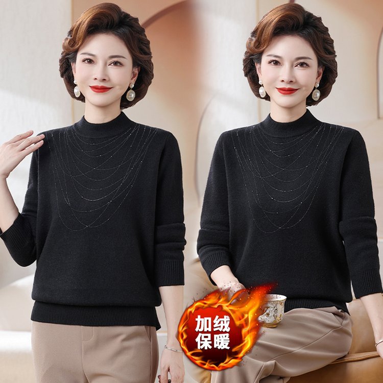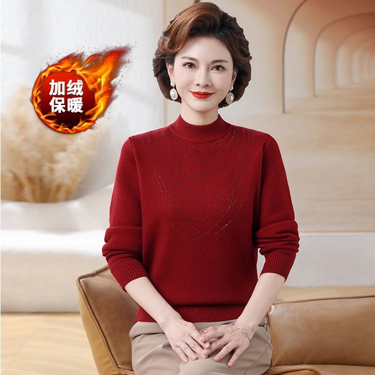 妈妈装秋冬2025新款洋气一体加绒毛衣中老年女时尚上衣加厚打底衫