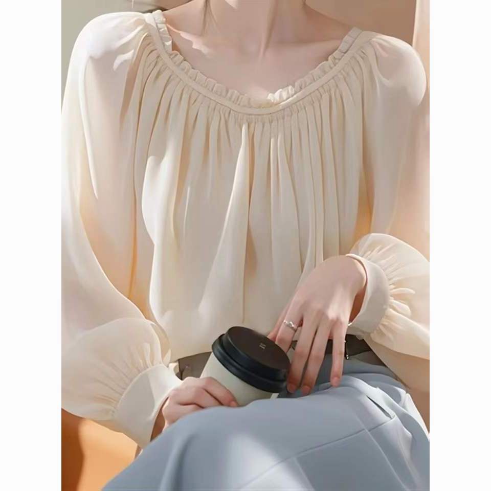 2025春季新款法式长袖雪纺衬衫女