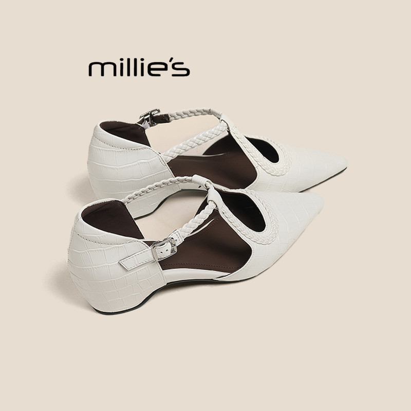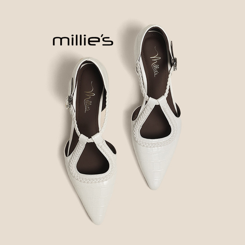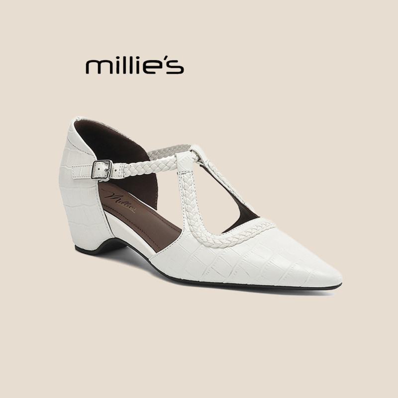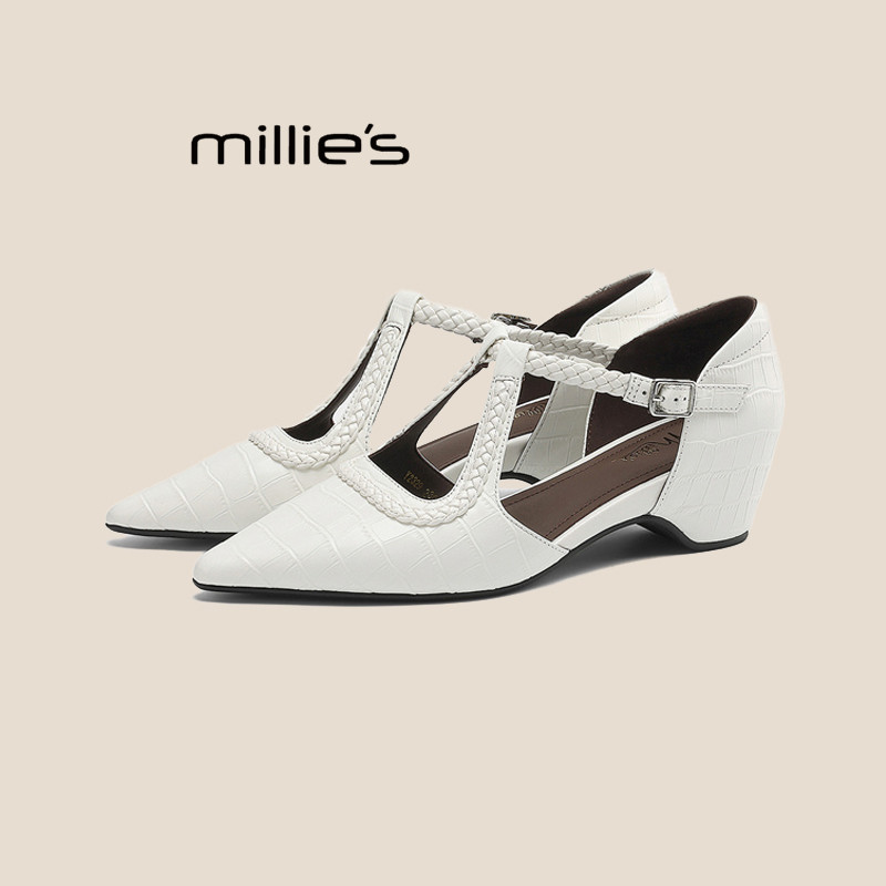 MILLIE'S/妙丽夏新款凉鞋女夏季粗跟中空高跟鞋包头性感真皮女鞋
