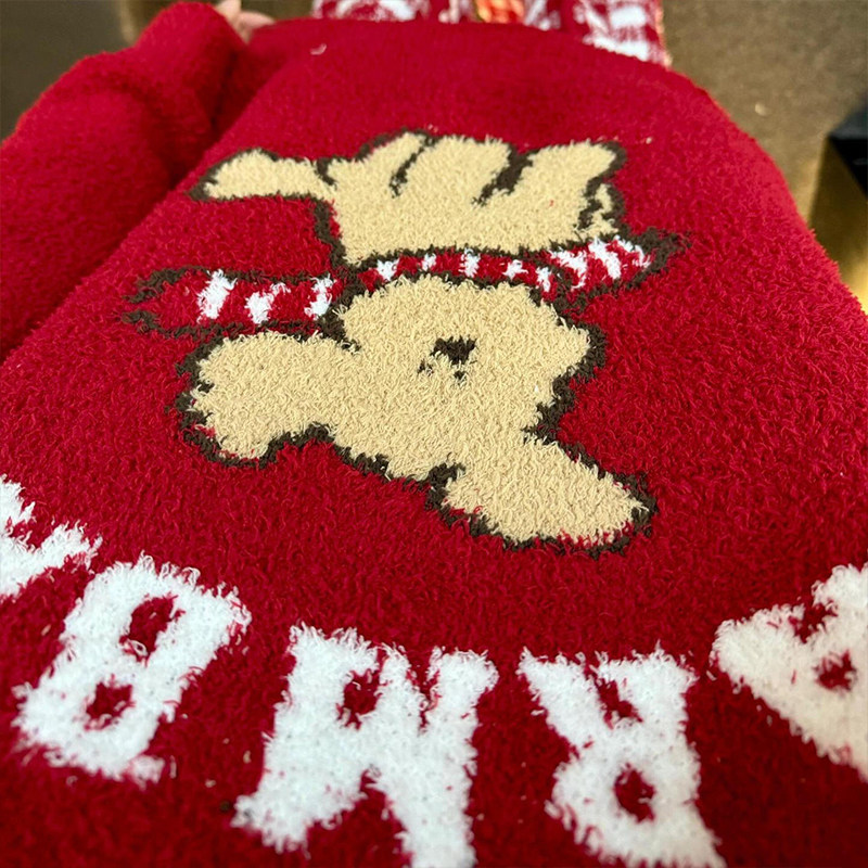 2026新款可爱小熊半边绒睡衣女春秋冬季条纹加绒加厚珊瑚绒家居服