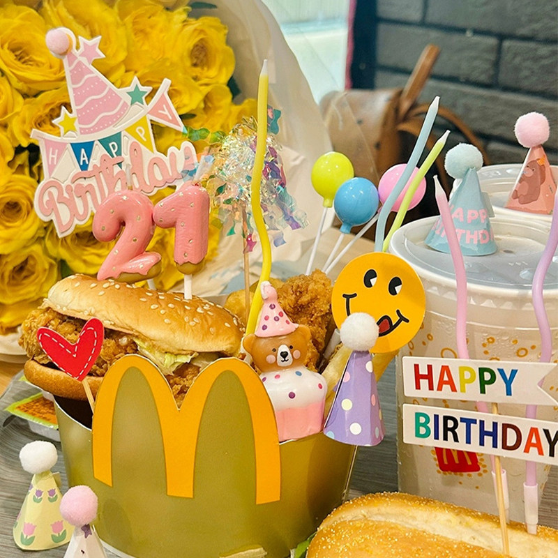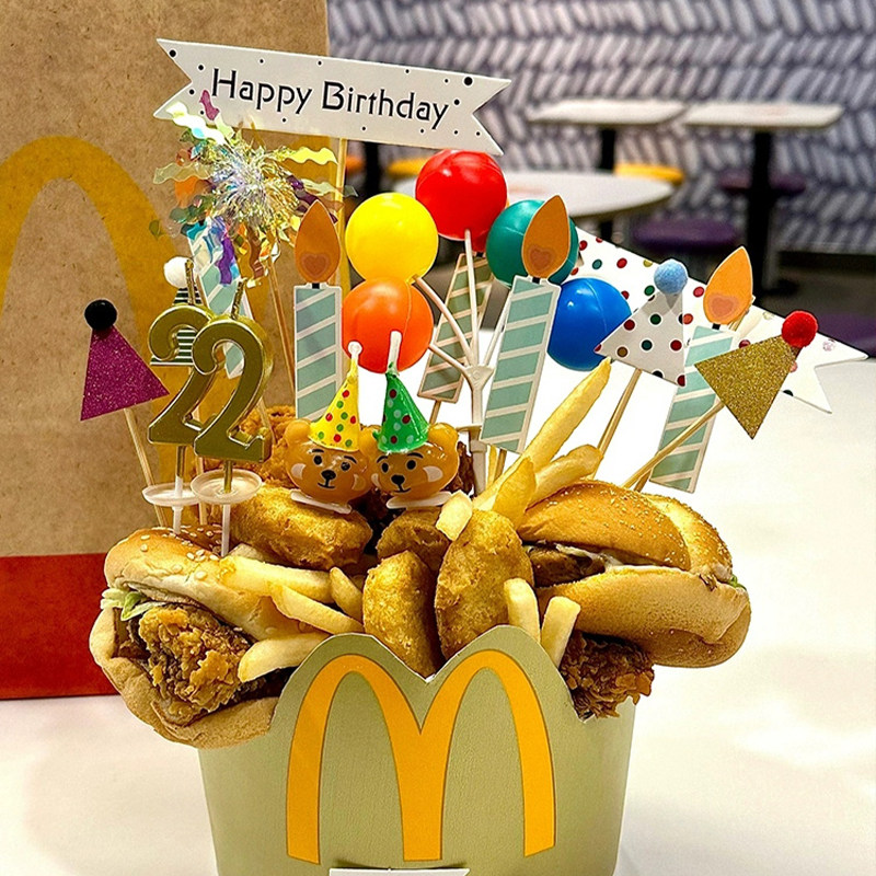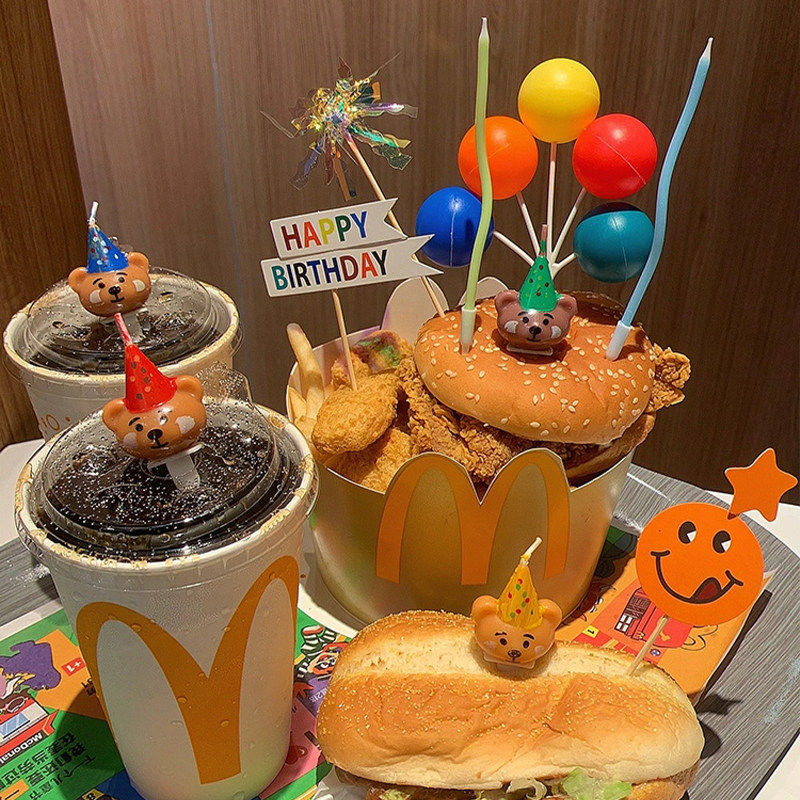小红书同款麦当劳生日桶西瓜榴莲蛋糕装饰插件牌网红小熊蜡烛摆件