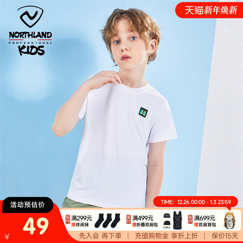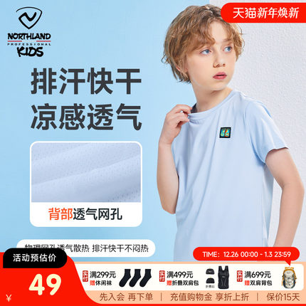 诺诗兰童装男童短袖T恤夏季薄款速干透气半袖儿童宽松上衣凉感t