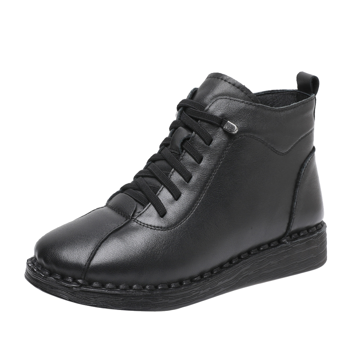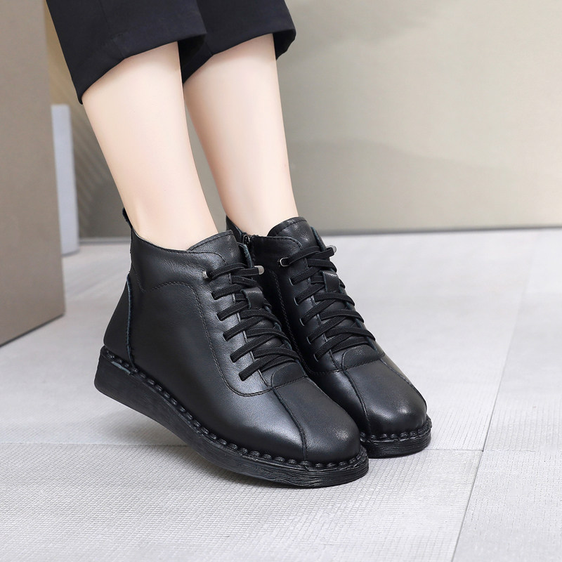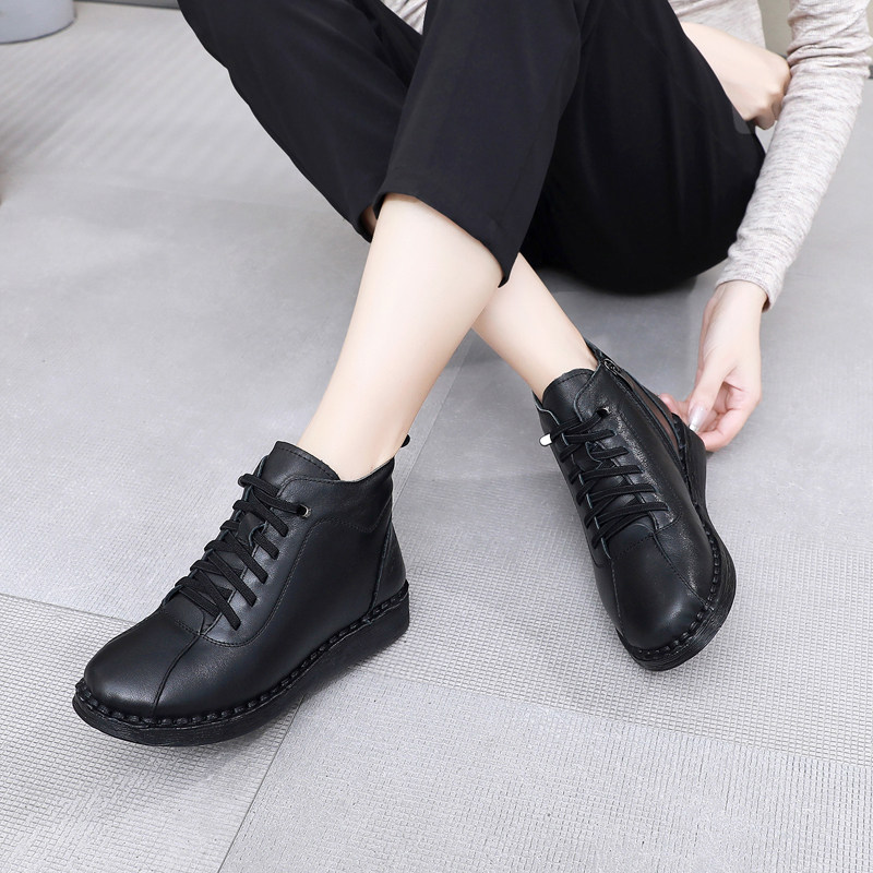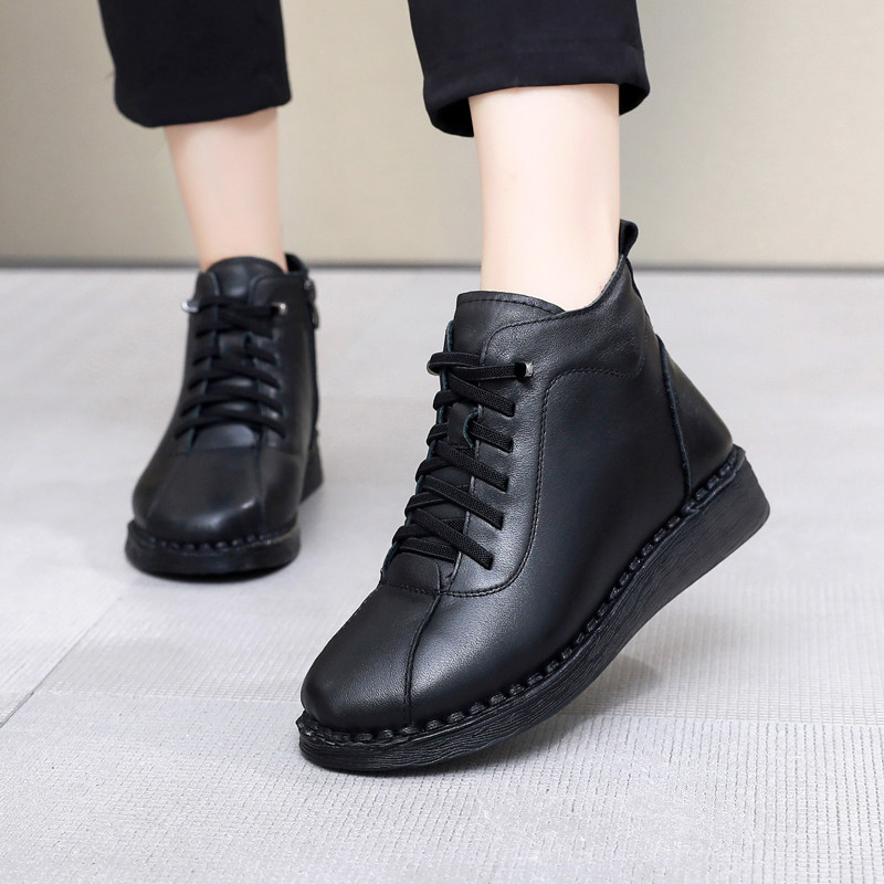 上海花牌真皮加绒棉鞋短靴女鞋防滑高帮侧拉链低跟百搭加绒马丁靴
