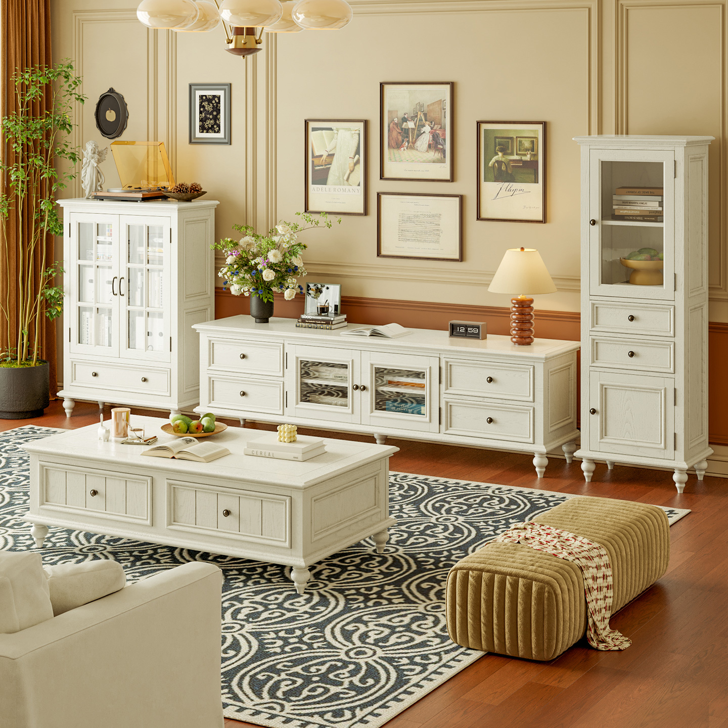 美式实木电视柜茶几组合客厅地柜白色现代简约小户型储物简欧家具