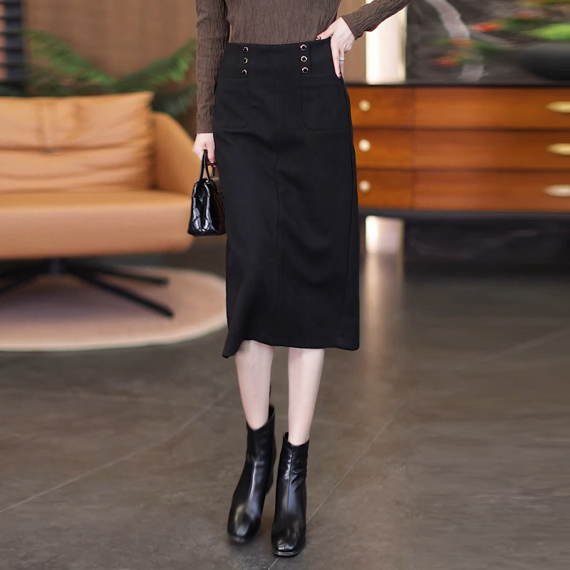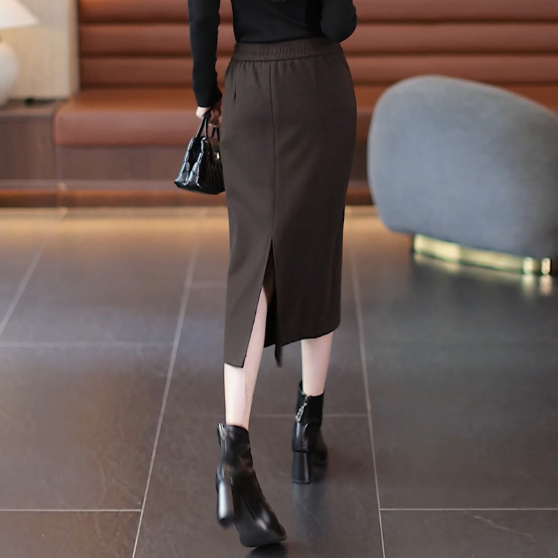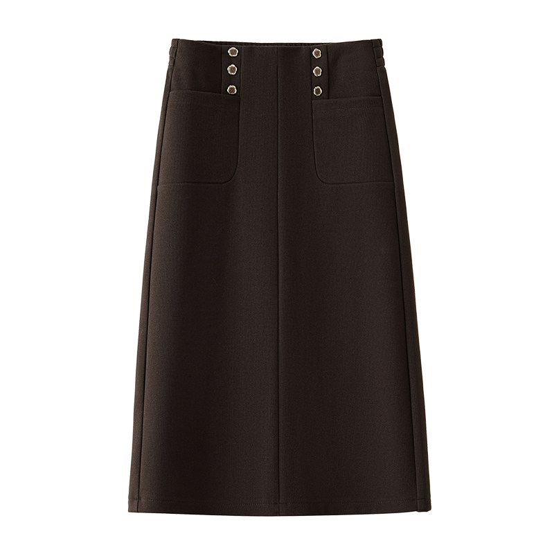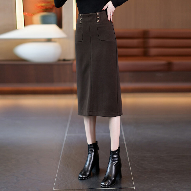 秋冬咖色毛呢半身裙女冬季2025新款高腰宽松直筒小个子包臀半裙冬
