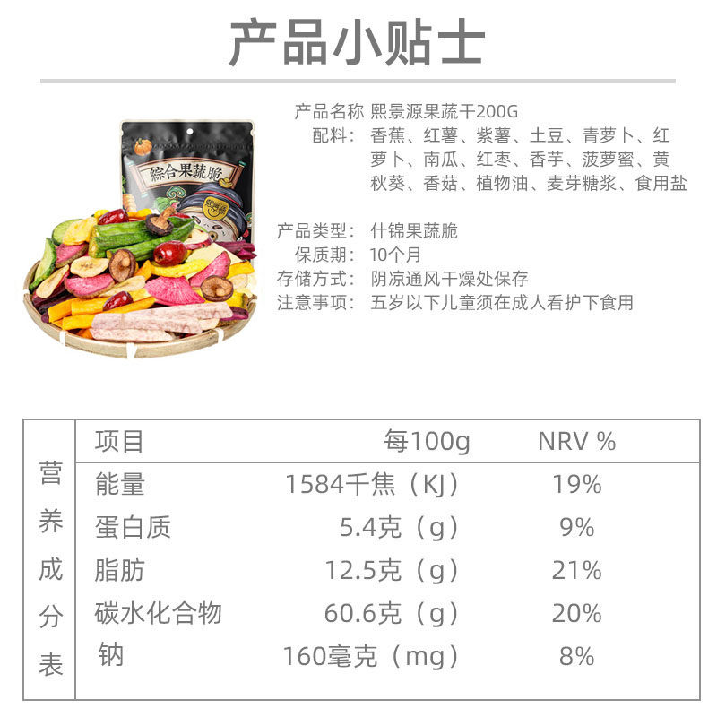 熙景源综合果蔬脆12种蔬果干香菇秋葵干办公室休闲零食