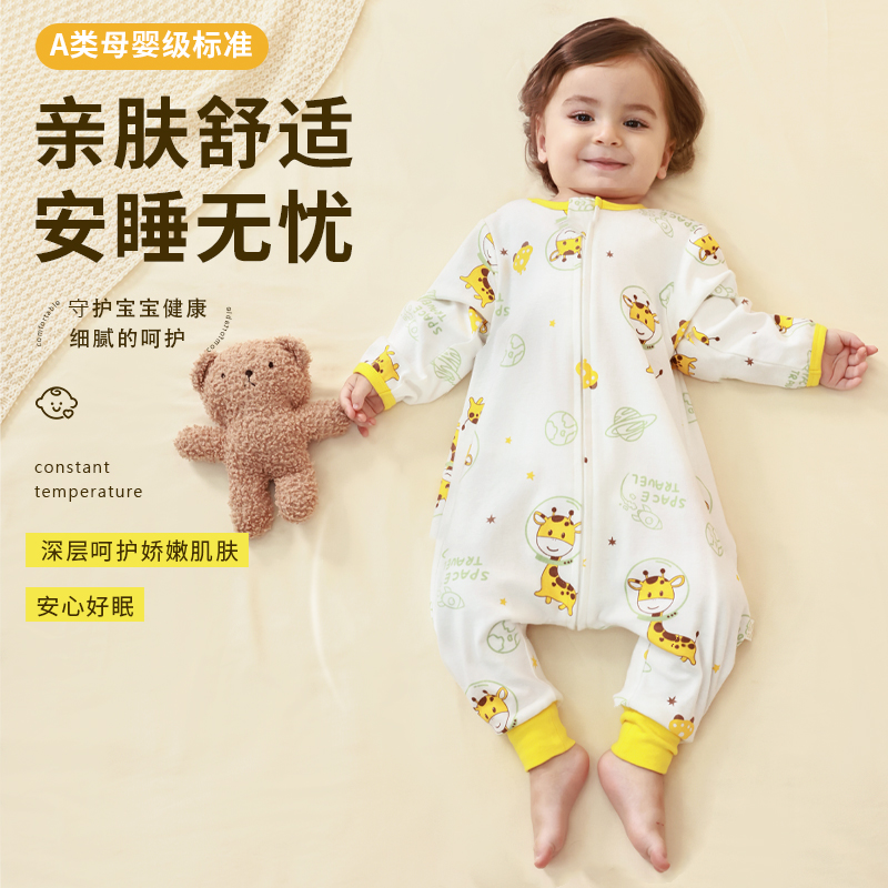 婴儿睡袋春秋纯棉宝宝连体分腿睡袋秋冬儿童四季通用防踢被睡衣