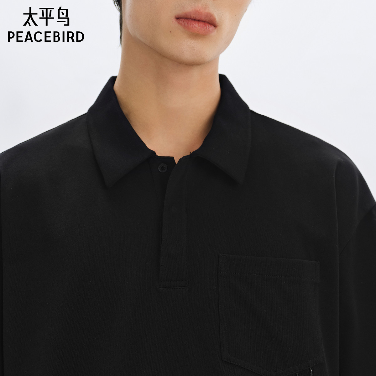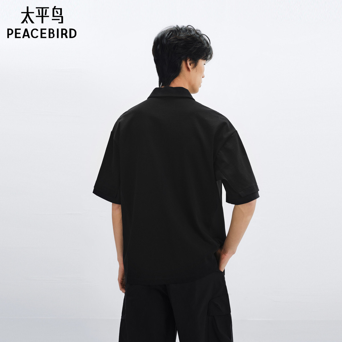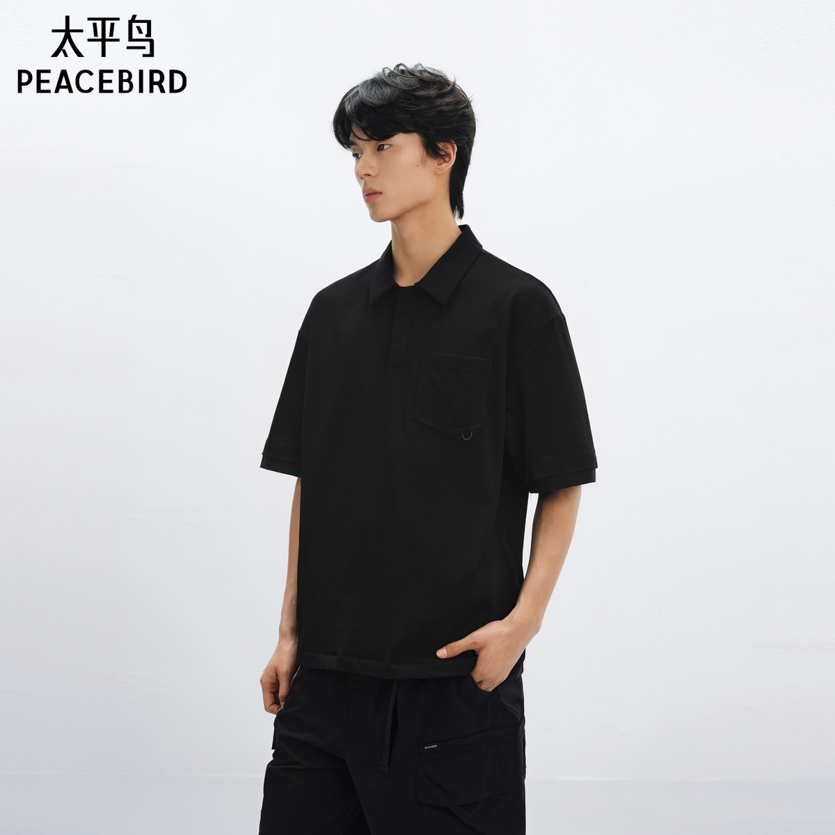 太平鸟男装 美式黑色polo衫25年夏季新款口袋工装翻领短袖t恤潮