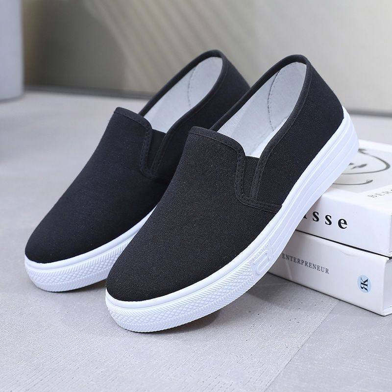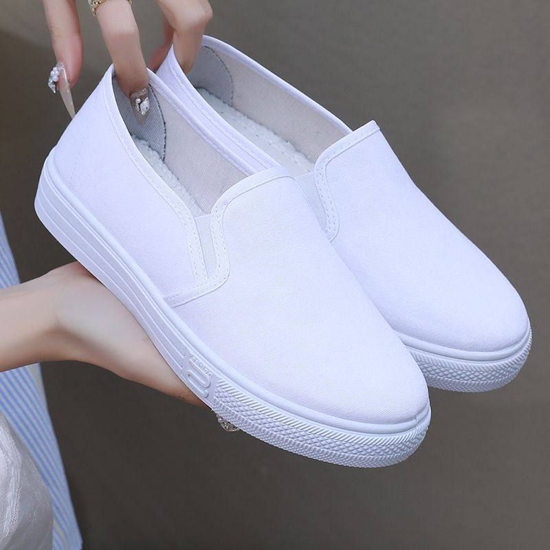 爆款厚底乐福鞋女透气帆布鞋老北京休闲护士妈妈学生工作小白鞋女