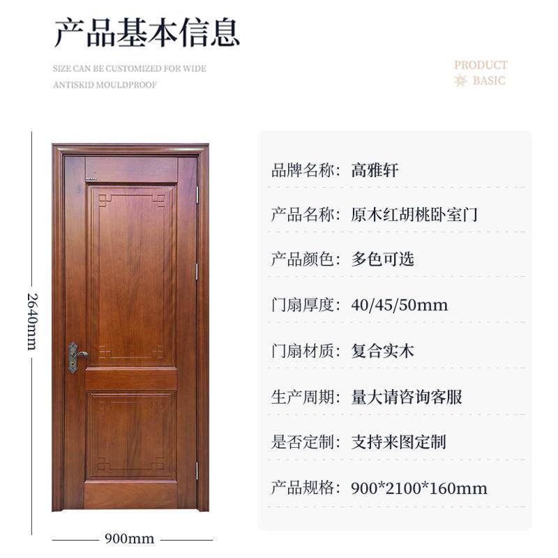 红胡桃木平开门实木门红橡木客厅门欧式现代房间门烤漆门