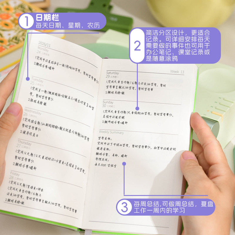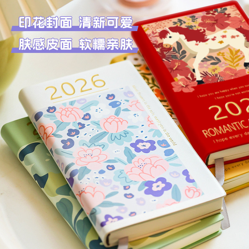 小清新糯米手感软皮面a6周计划本新款2026年日程本原创手绘随身小便携口袋迷你笔记本本子办公工作日历记事本