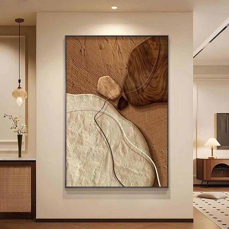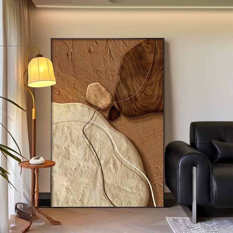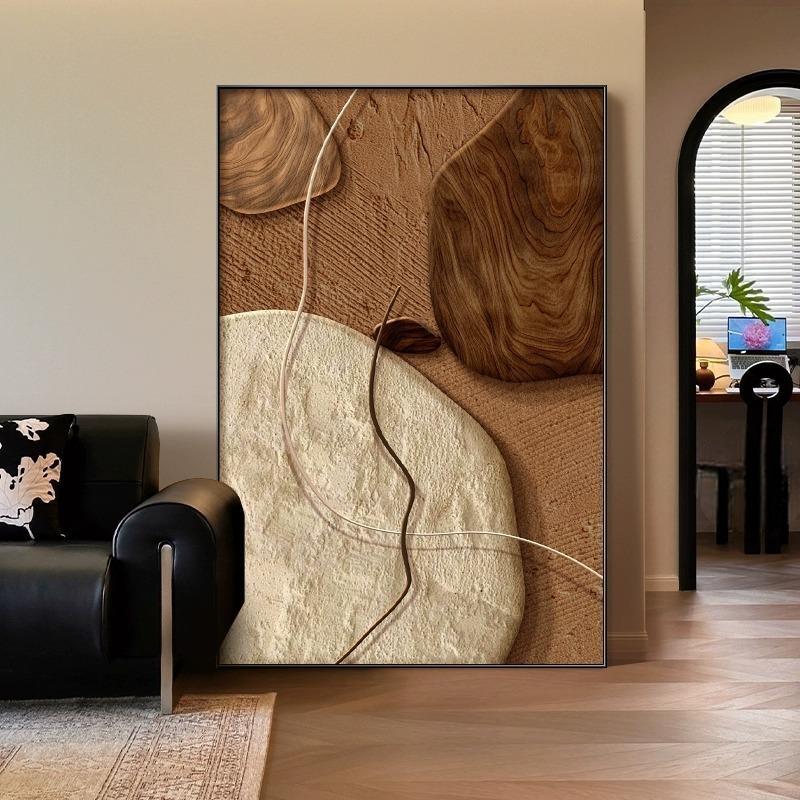 中古风客厅装饰画石来运转沙发背景墙挂画高级感复古抽象玄关壁画