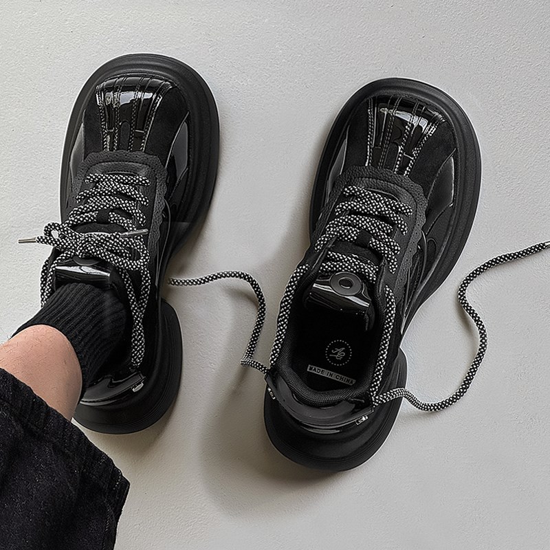 男鞋2025新款夏季透气高级感运动鞋黑色大头休闲鞋小W众厚底老爹