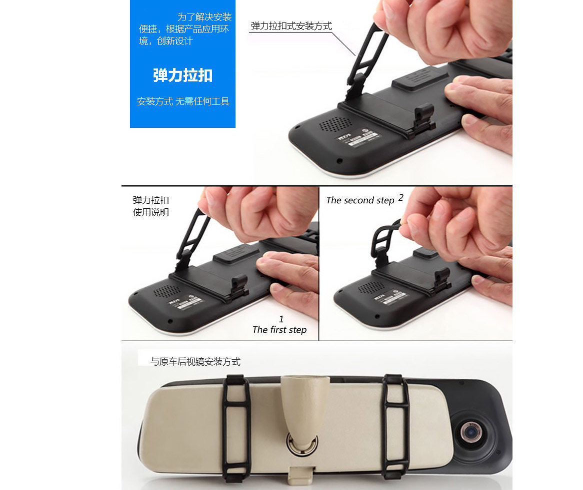 车载汽车后视镜行车记录仪循环录像带倒车影像双镜头前后录像