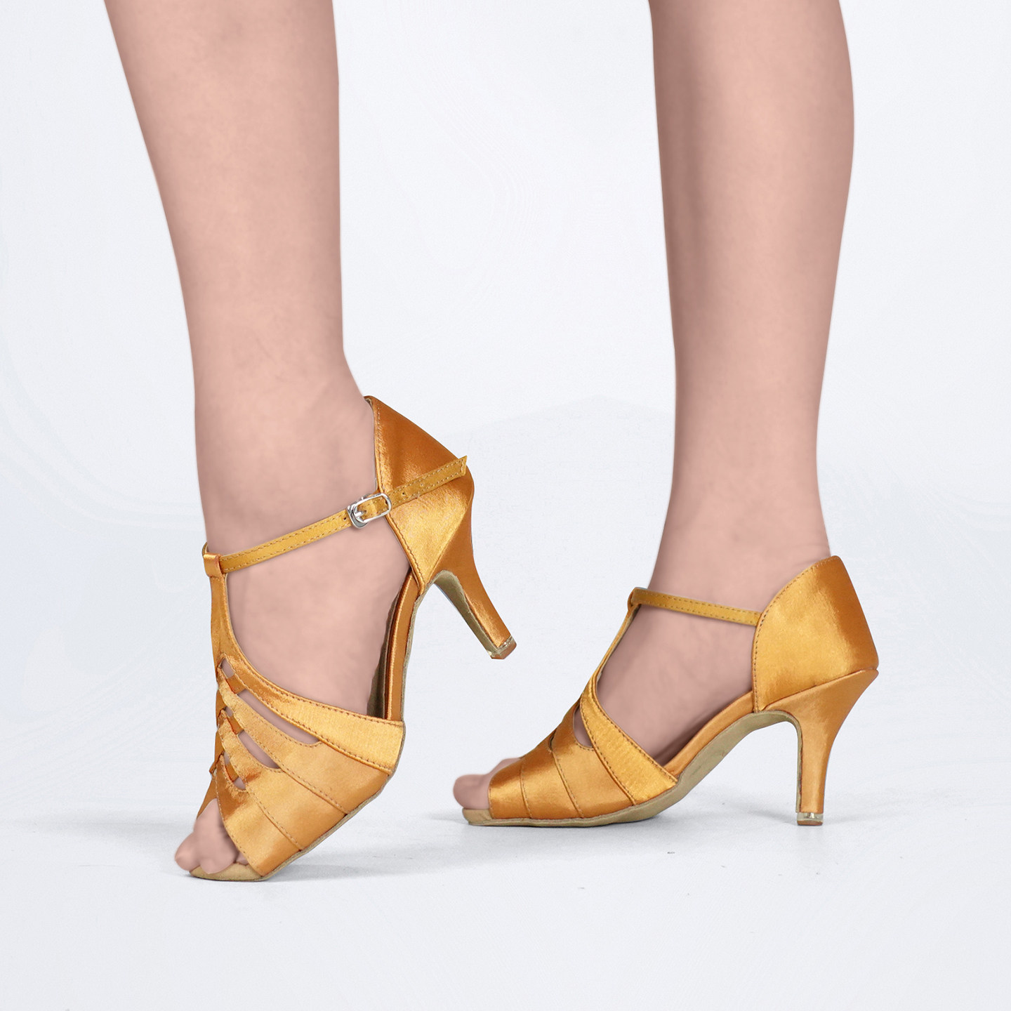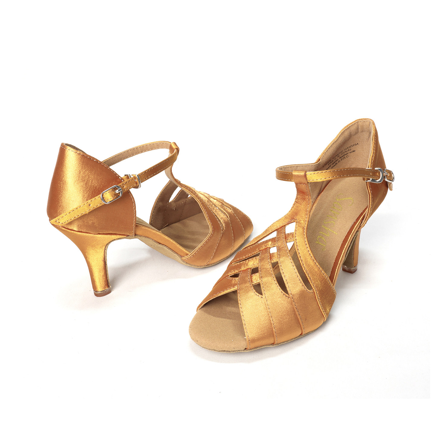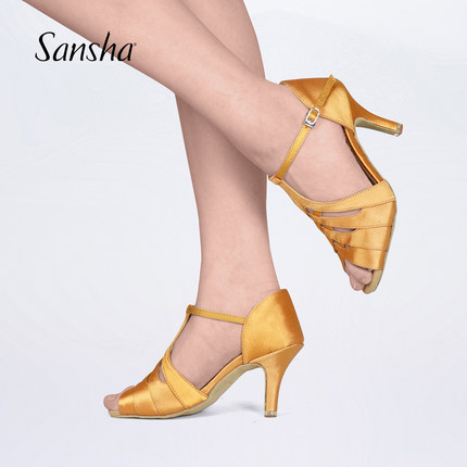 Sansha 三沙拉丁舞鞋女成人中跟缎面交谊伦巴恰恰国标舞鞋
