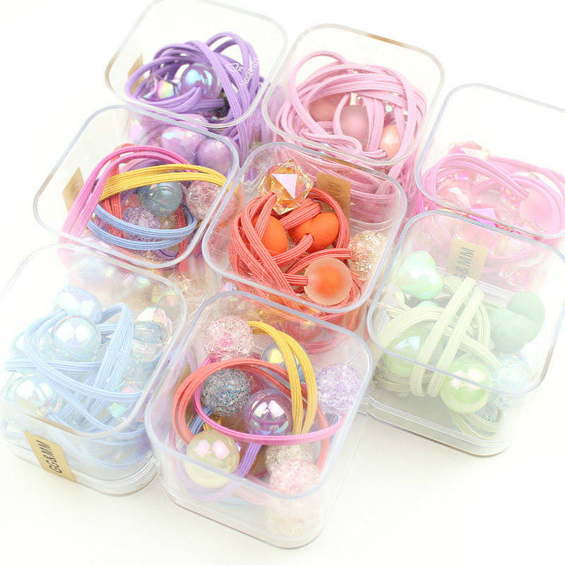 双头6根盒装彩色珠子发圈儿童发饰简约发绳可爱头绳中短绳高弹力