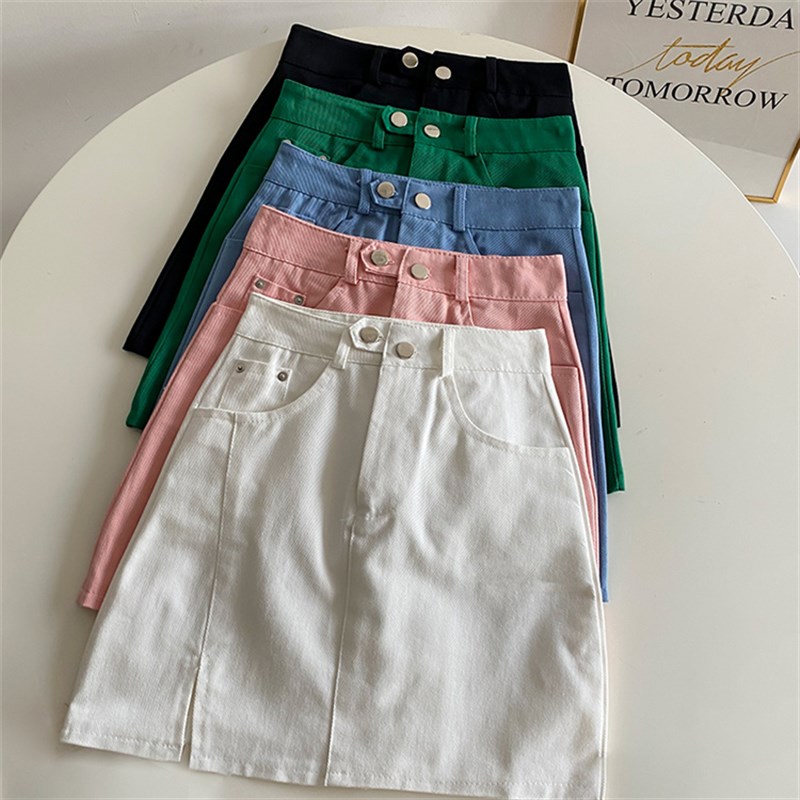 大码开叉牛仔半身短裙女夏胖mm高腰薄款a字裙显瘦遮胯百搭包臀裙
