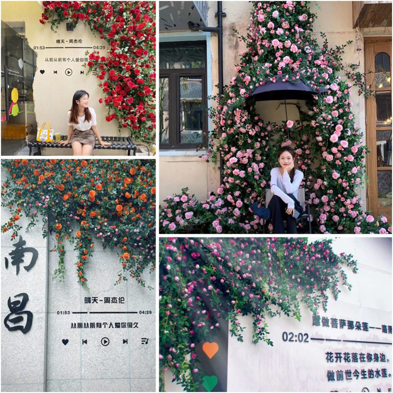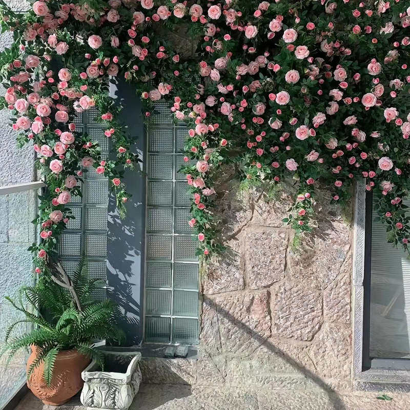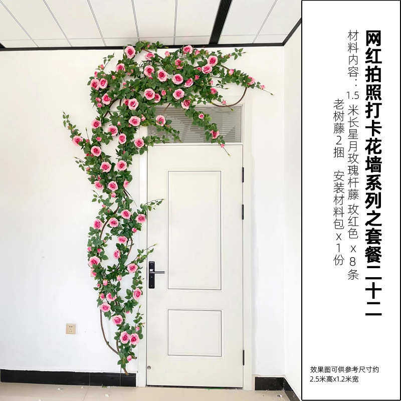 仿真玫瑰花藤网红拍照打卡背景墙晴天假花墙景区民宿门店阳台装饰