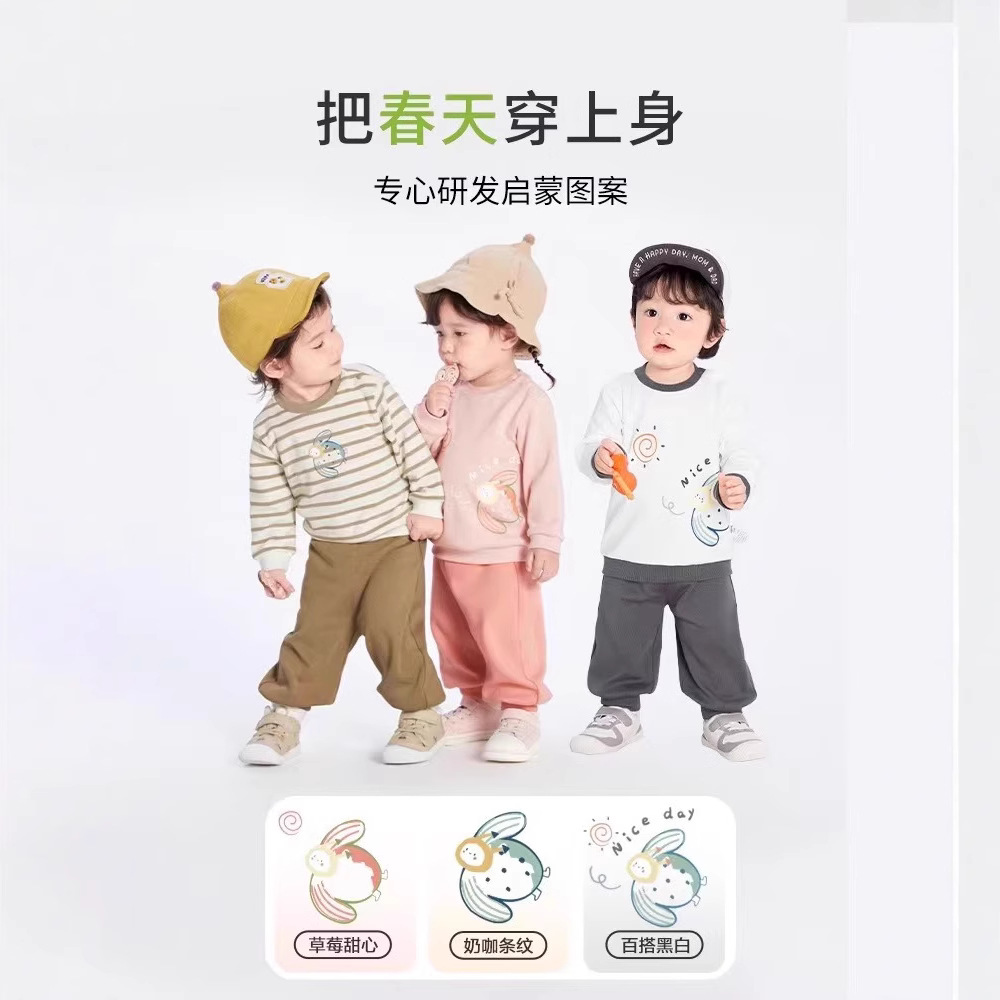 宝宝套装春秋装2024新款儿童童装男童运动女童清新两件套中小童