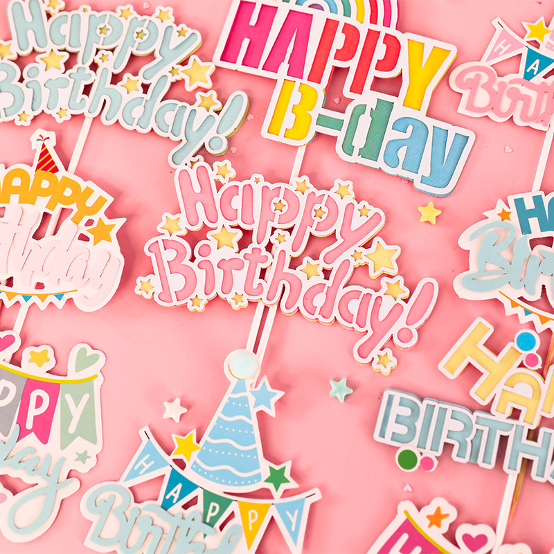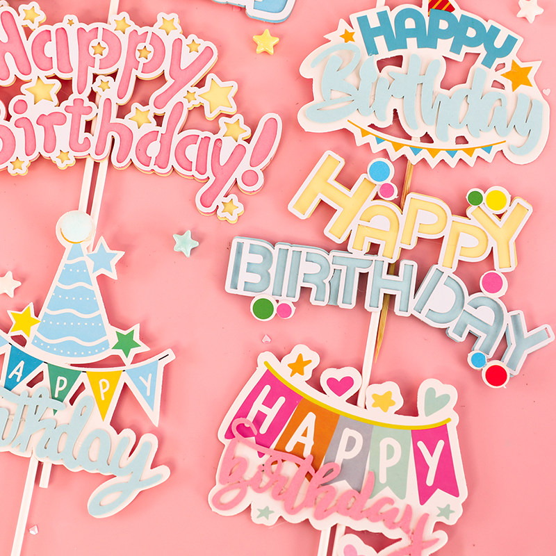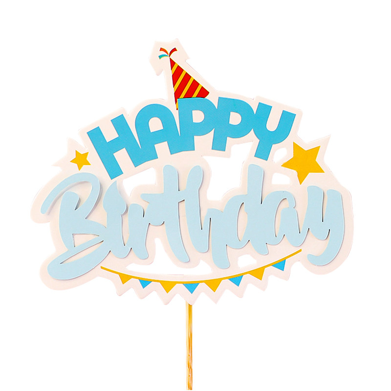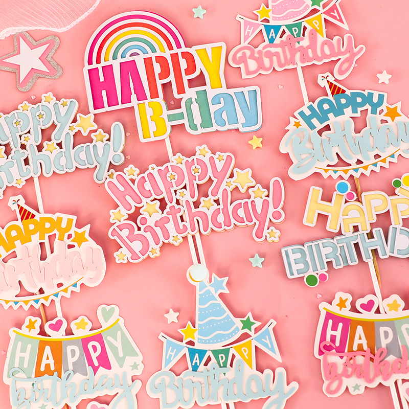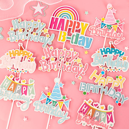 烘焙蛋糕装饰可爱彩色卡通生日插牌彩虹星星气球派对帽儿童HB插件